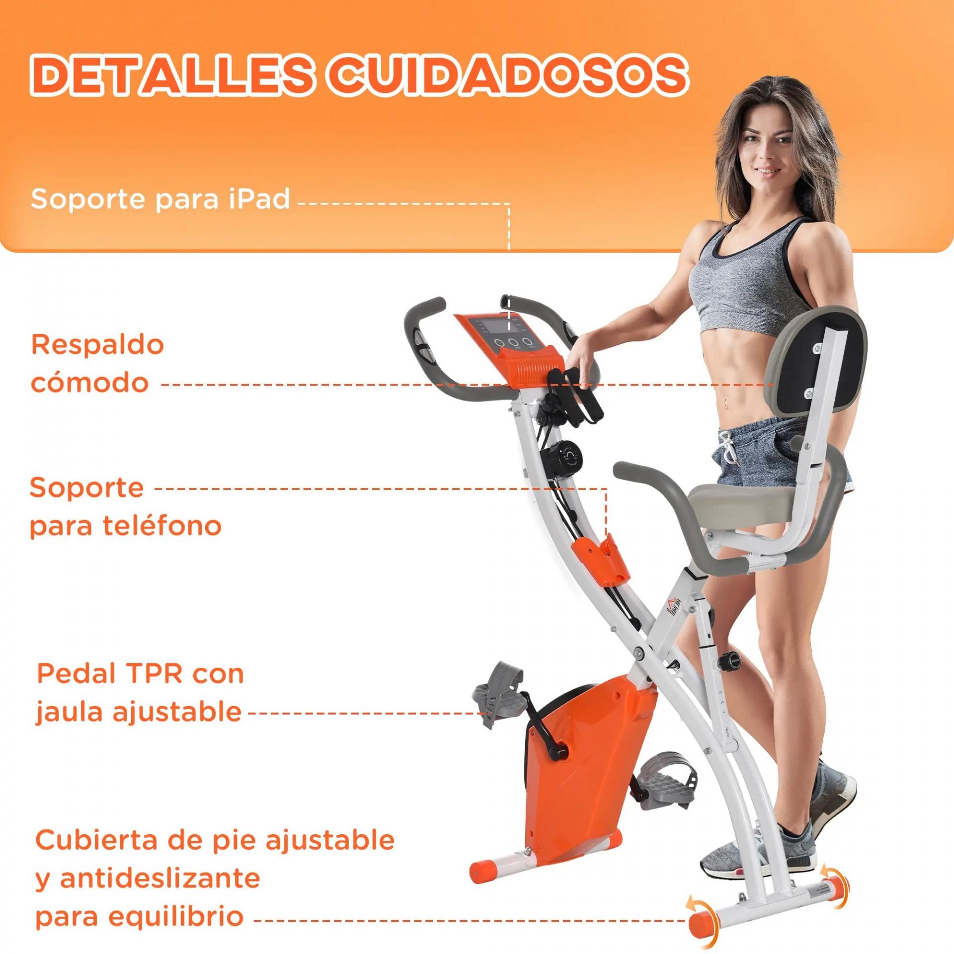Bicicleta Estática Plegable Regulable en Altura Resistencia Magnética Ajustable Bici Estática con Pantalla LCD Asiento con Respaldo Sensor de Pulso Carga 120 kg para Casa 105x48x118 cm Naranja