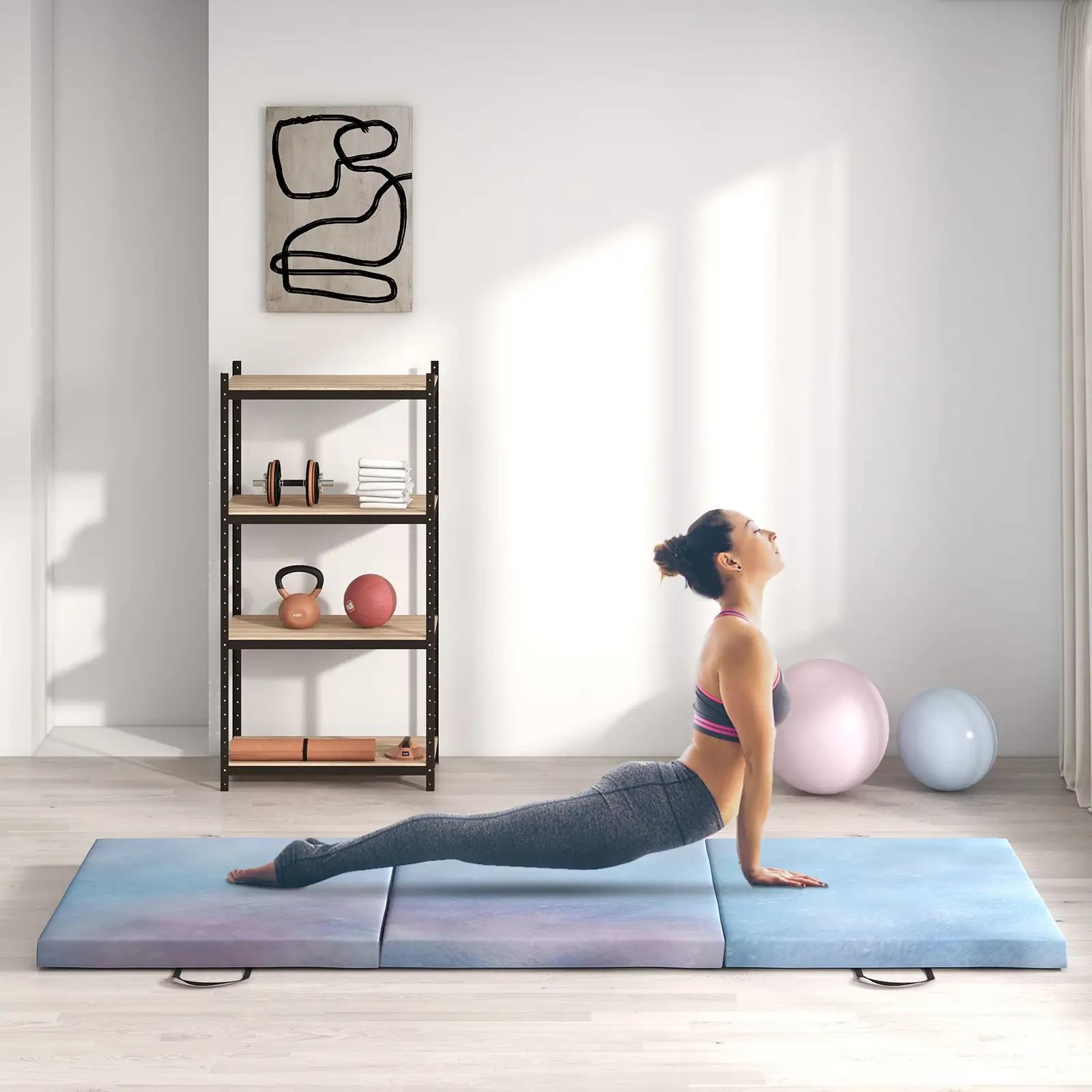 Colchoneta Gimnasia Plegable de Grosor 5 cm con Asas de Transporte para Yoga Aeróbic 180x60x5 cm Azul Degradado
