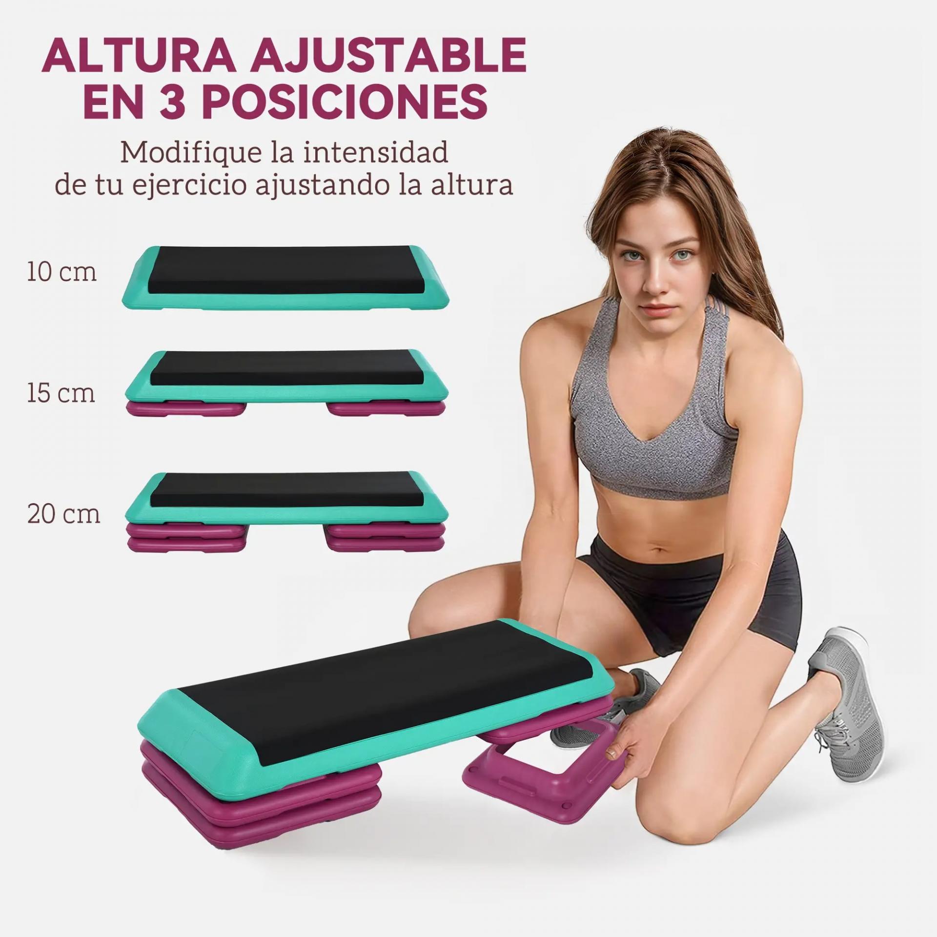 ALTURA AJUSTABLE SEGÚN TU ENTRENAMIENTO: Este step para fitness permite trabajar a diferentes niveles de intensidad gracias a sus plataformas apilables, que ofrecen tres alturas (10, 15 y 20 cm). Ideal para rutinas de cardio, tonificación o ejercicios funcionales