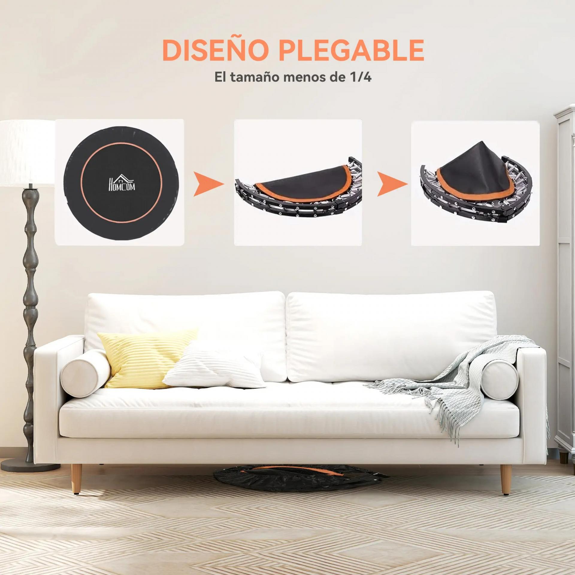- DISEÑO PLEGABLE: Este trampolín de fitness se puede plegar, reduciendo su tamaño a 1/4 para que puedas guardarlo cómodamente. Puedes meterlo en el coche, o guardarlo debajo de la cama o el sofá