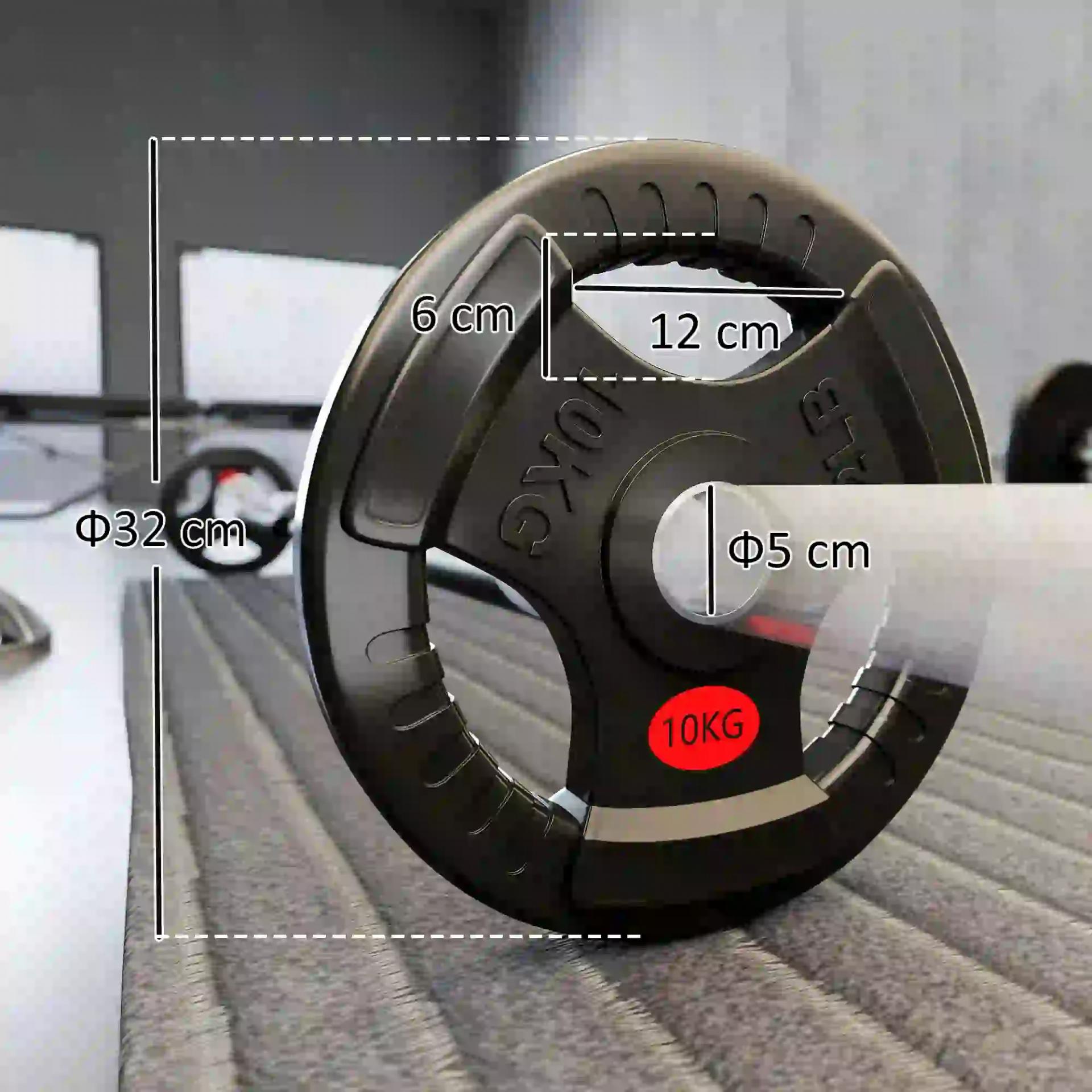 Discos Pesas Olímpicos Agujero Ø50 mm 2x10 kg con Anillo Interior de Acero Triple Agarre para Mancuernas y Barras Negro