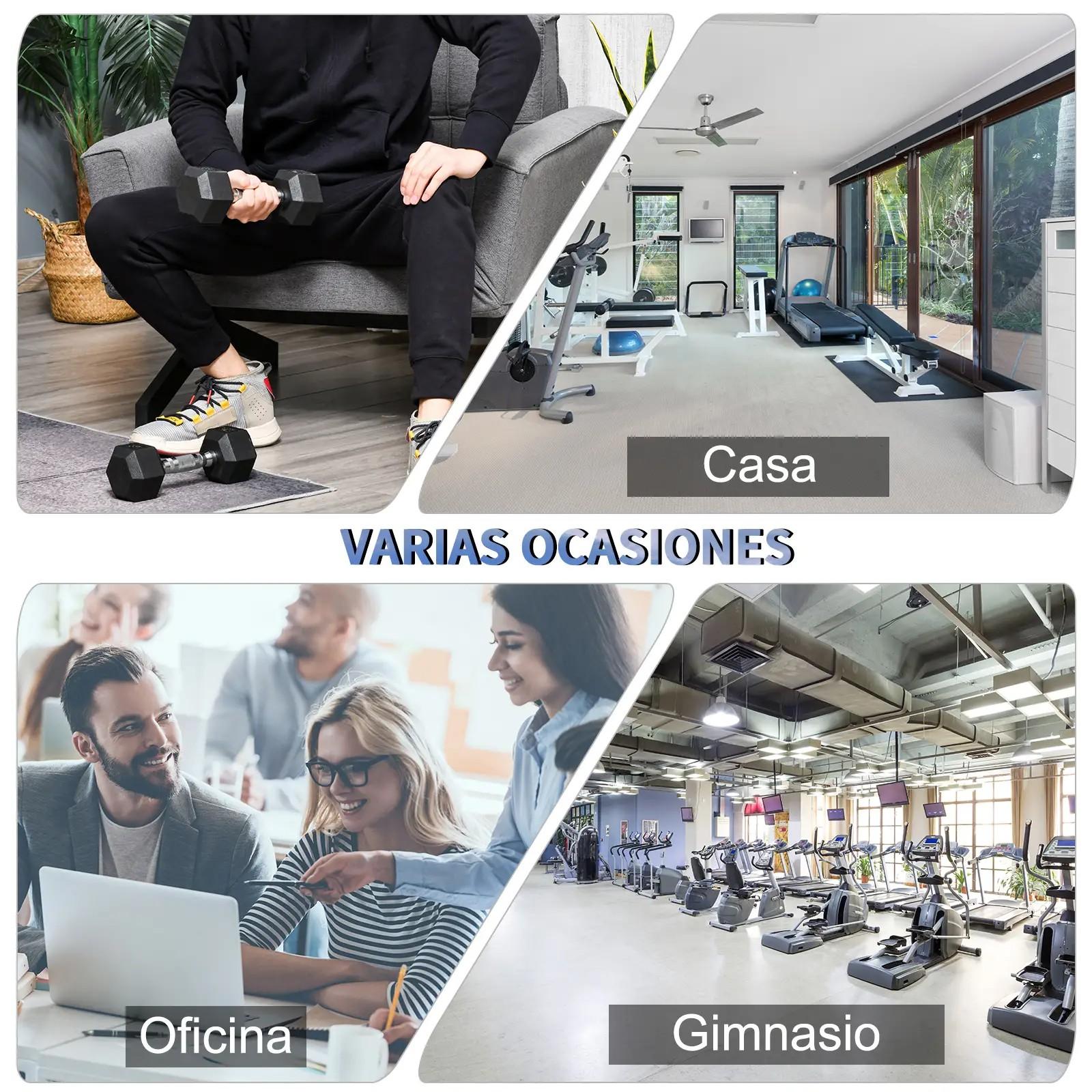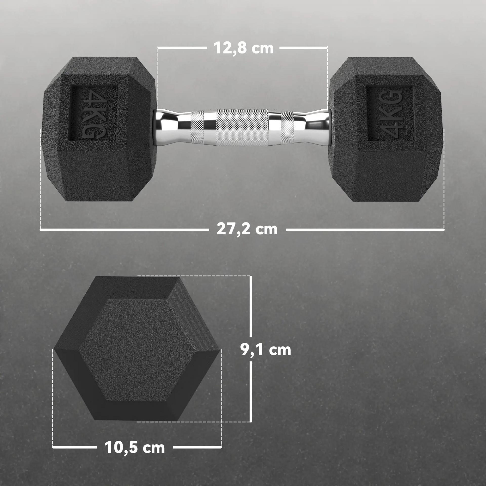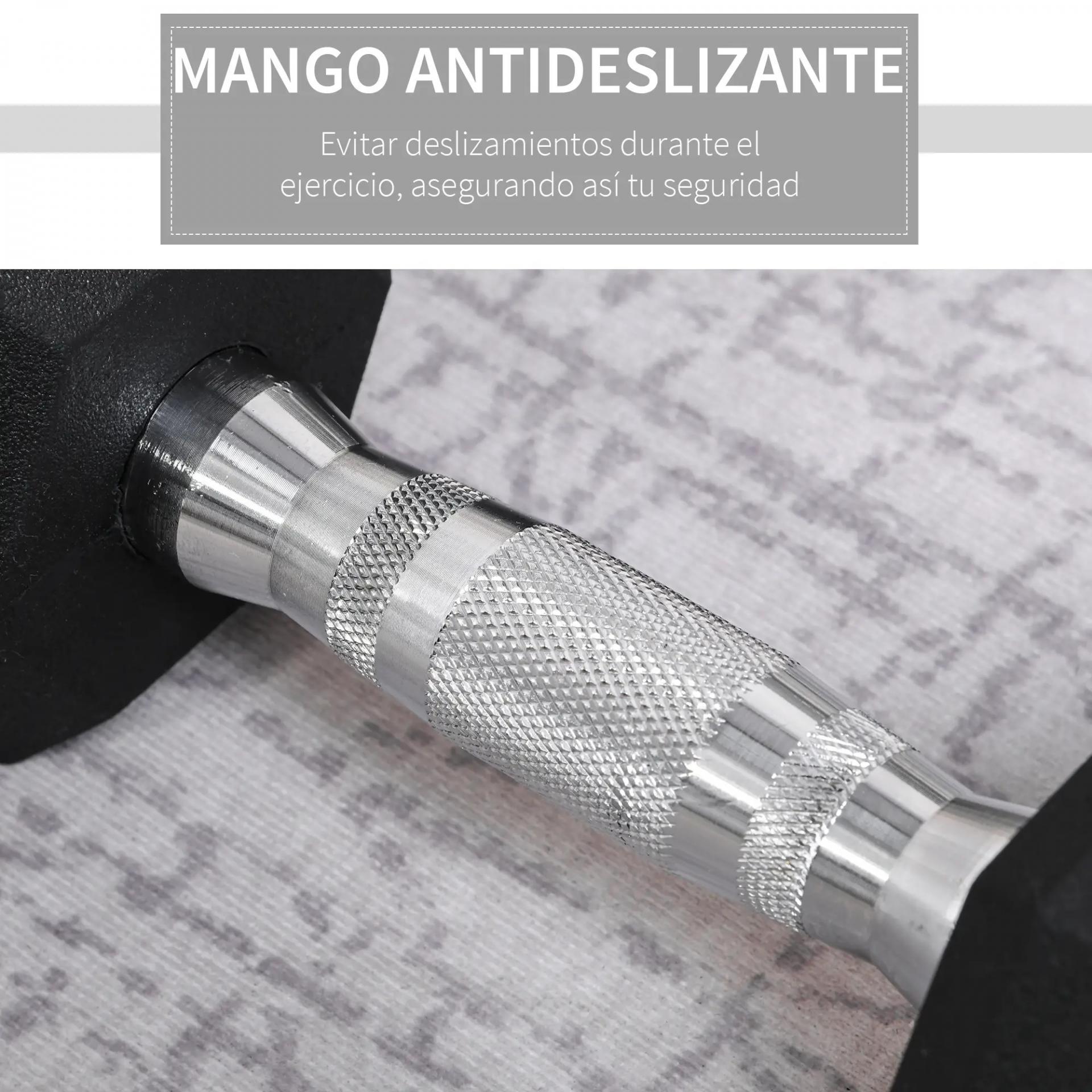 - EXTREMOS HEXAGONALES ANTIVUELCO: Este kit de mancuernas tiene cabezales recubiertos de goma con forma hexagonal que evita que rueden al dejarlas sobre el suelo, aportando estabilidad y seguridad durante todo el entrenamiento
