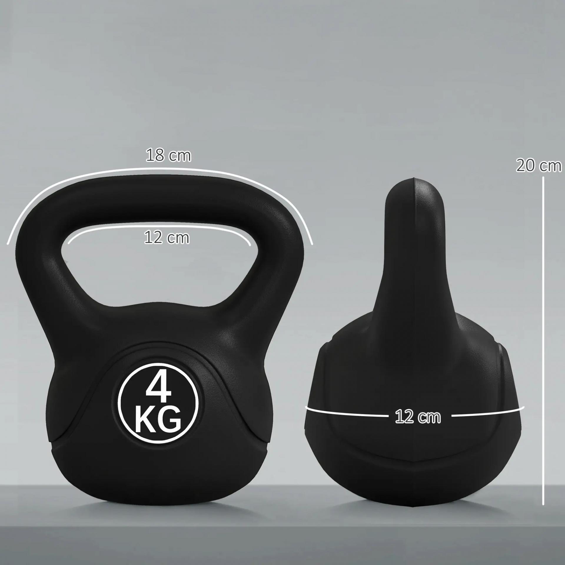 Pesa Rusa de 4 kg Kettlebell Relleno de Arena con Mango Ancho y Base Plana para Entrenamiento 18x12x20 cm Negro