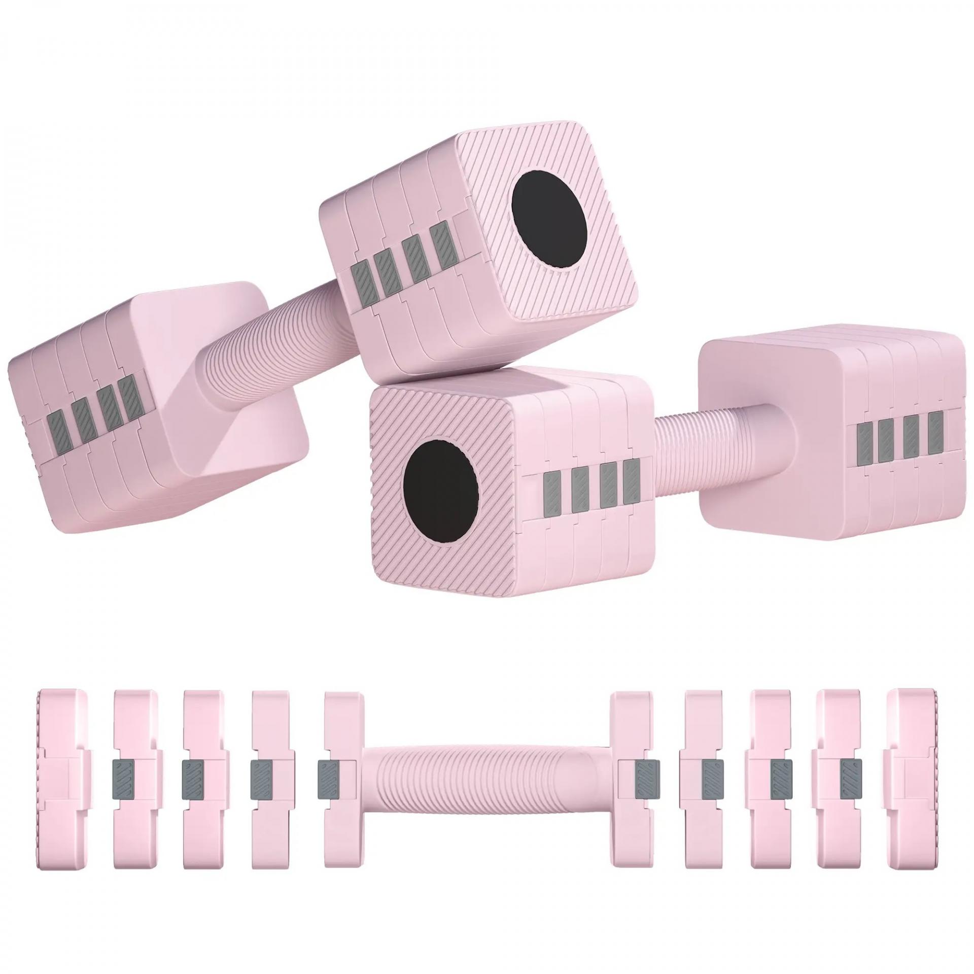 Juego de Mancuernas 10 kg con Mango Antideslizante y Diseño Cuadrado para Entrenamiento en Casa Gimnasio Rosa