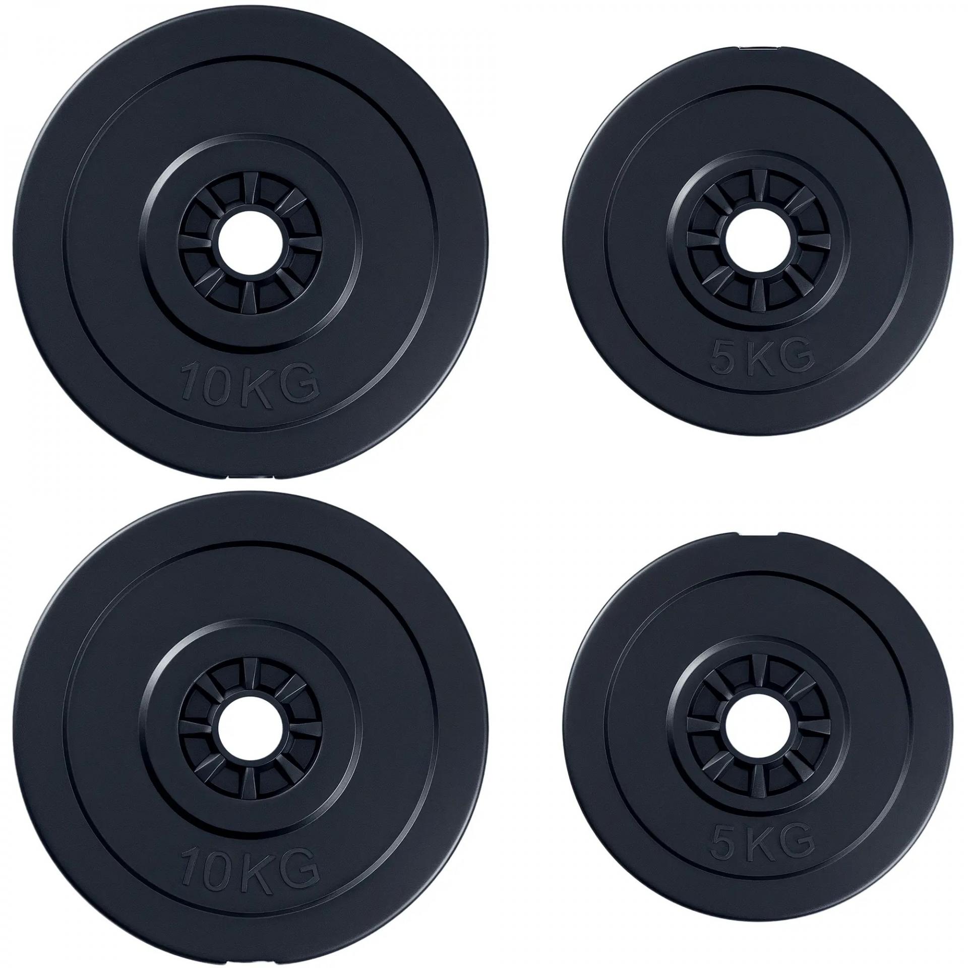 Juego de 4 Discos de Pesas de 2x5 kg y 2x10 kg Juego de Placas de Pesas con Agujero de Ø25 mm para Barra o Mancuernas Entrenamiento de Fuerza Levantamiento de Pesas Negro