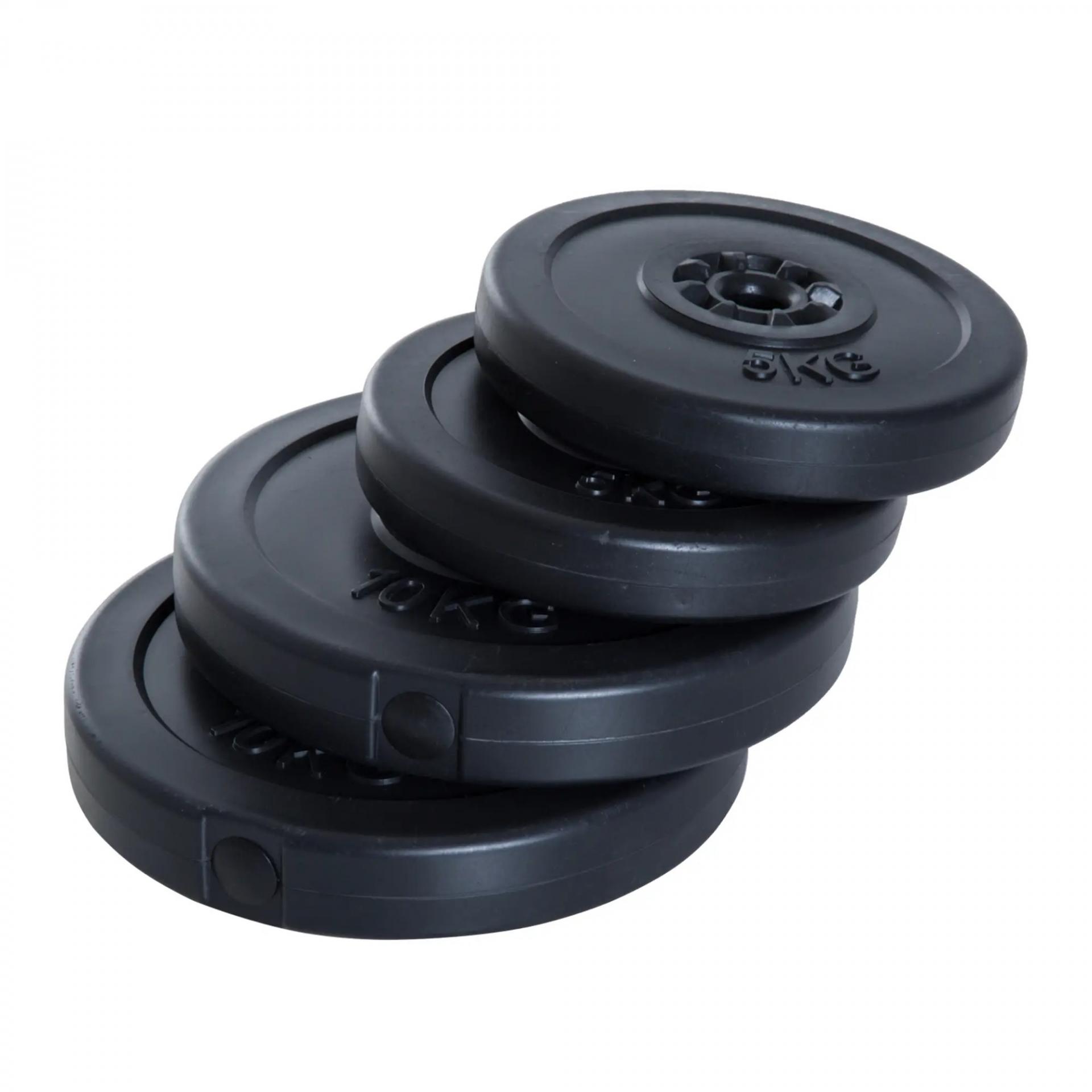 JUEGO DE 4 PESAS: Este juego de 4 discos de pesas, 2 de 5 kg y 2 de 10 kg, es el complemento perfecto para tus barras de pesas y equipos de musculación