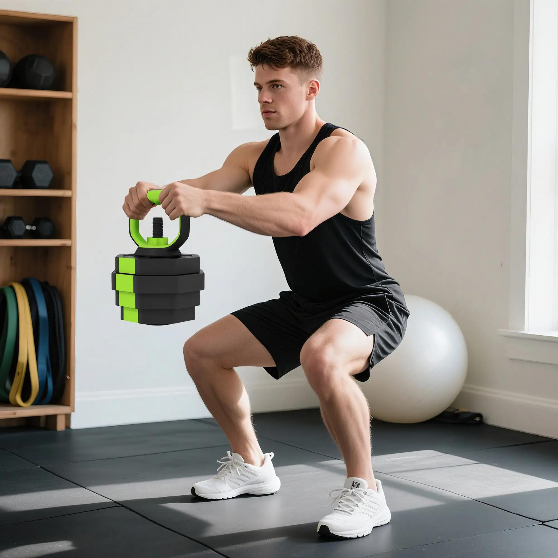 CONJUNTO MULTIFUNCIONAL 4EN1: Ideal para diferentes tipos de entrenamiento, este conjunto se transforma fácilmente en kettlebell, barra, mancuernas o soporte para flexiones. Permite variar los ejercicios, haciendo tu entrenamiento más completo y motivador