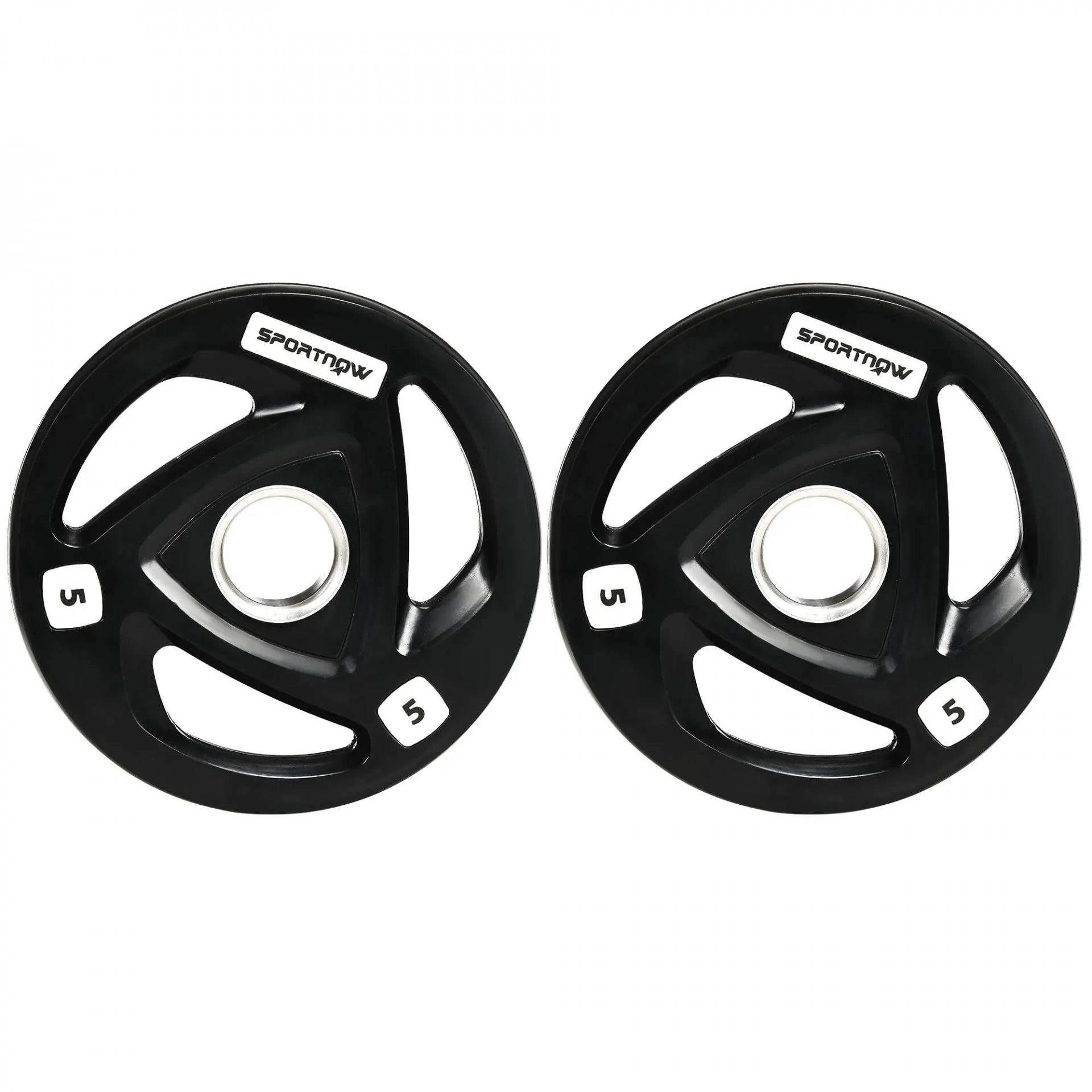 Juego de 2 Discos de Pesas Olímpicas de 5 kg con Orificio de 5 cm para Entrenamiento de Fuerza Ø24x3,5 cm Negro