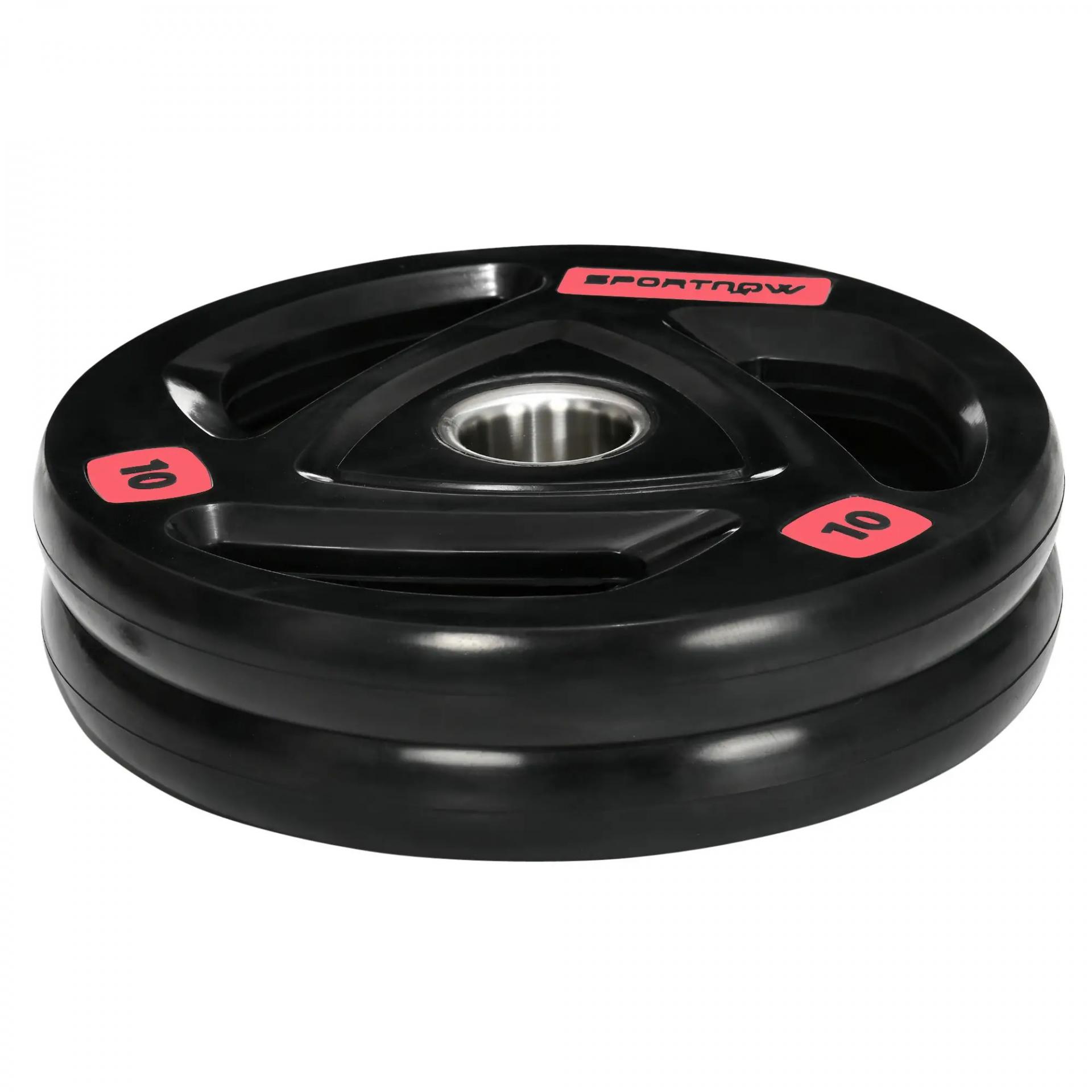 - ENVOLTURA DE CAUCHO: El recubrimiento de caucho de discos olimpicos, además de proporcionar mayor resistencia a la corrosión, también reduce el ruido en caso de caída