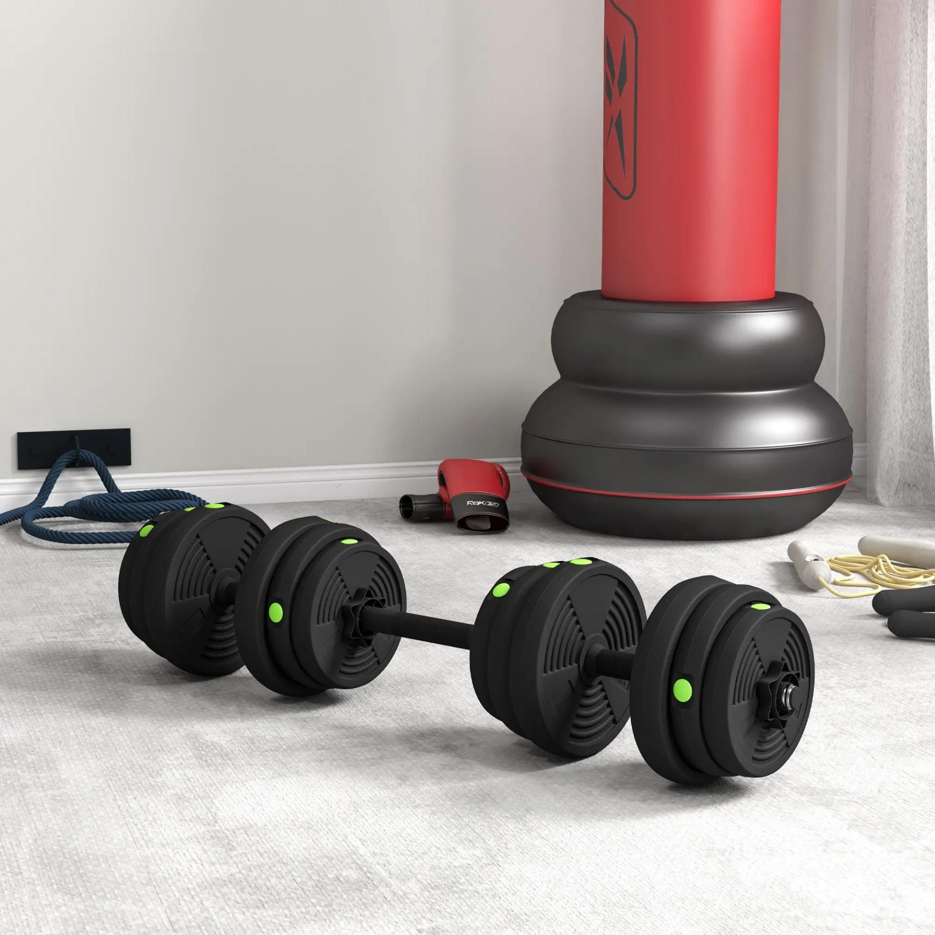 Juego de Mancuernas Ajustables 25 kg 2 en 1 con Barras Conexión y Mangos Antideslizantes para Gimnasio en Casa Negro