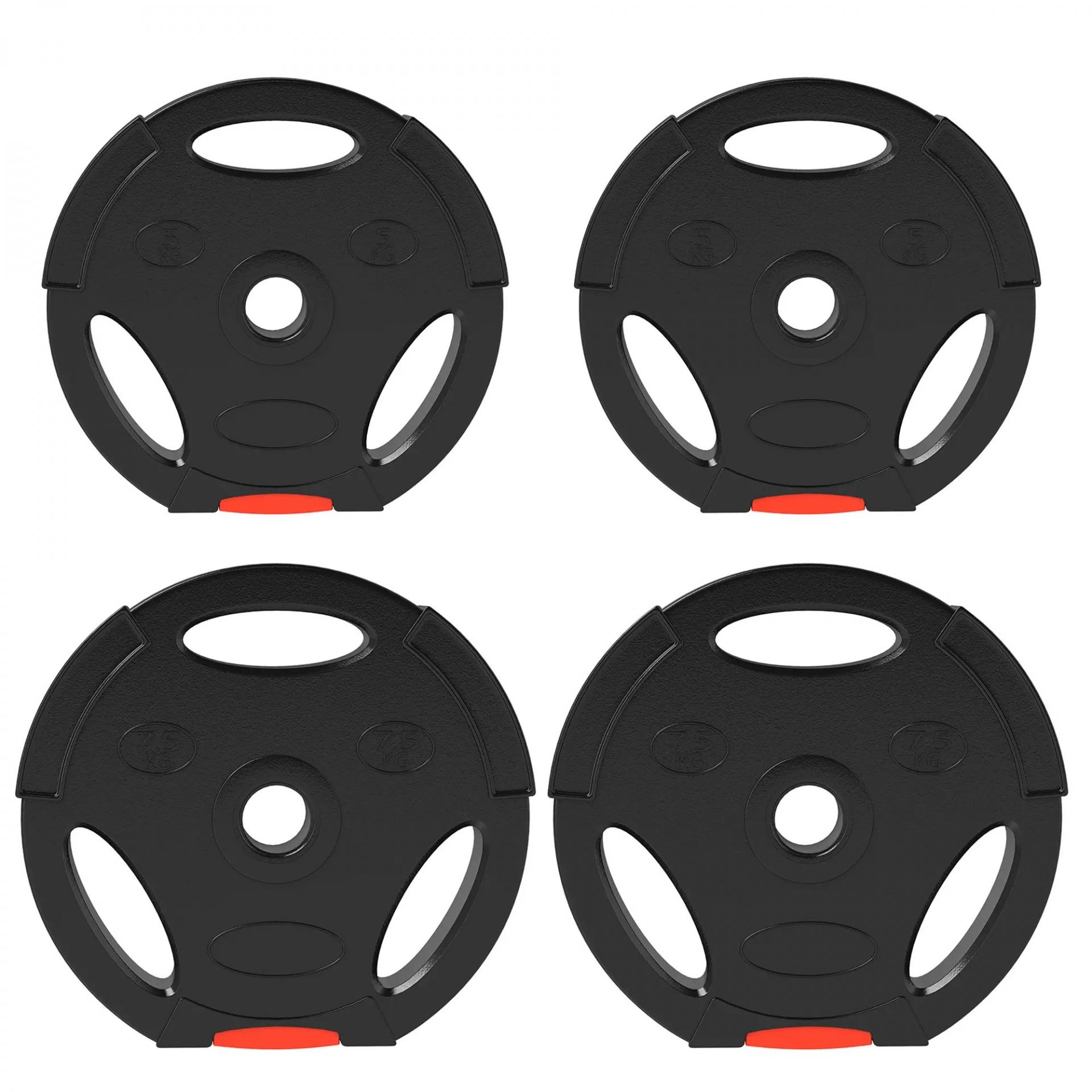 Juego de Discos Pesas de 4 Piezas 2x5 kg 2x7,5 kg con Orificios de 2,5 cm para Entrenamiento Fitness en Hogar Negro