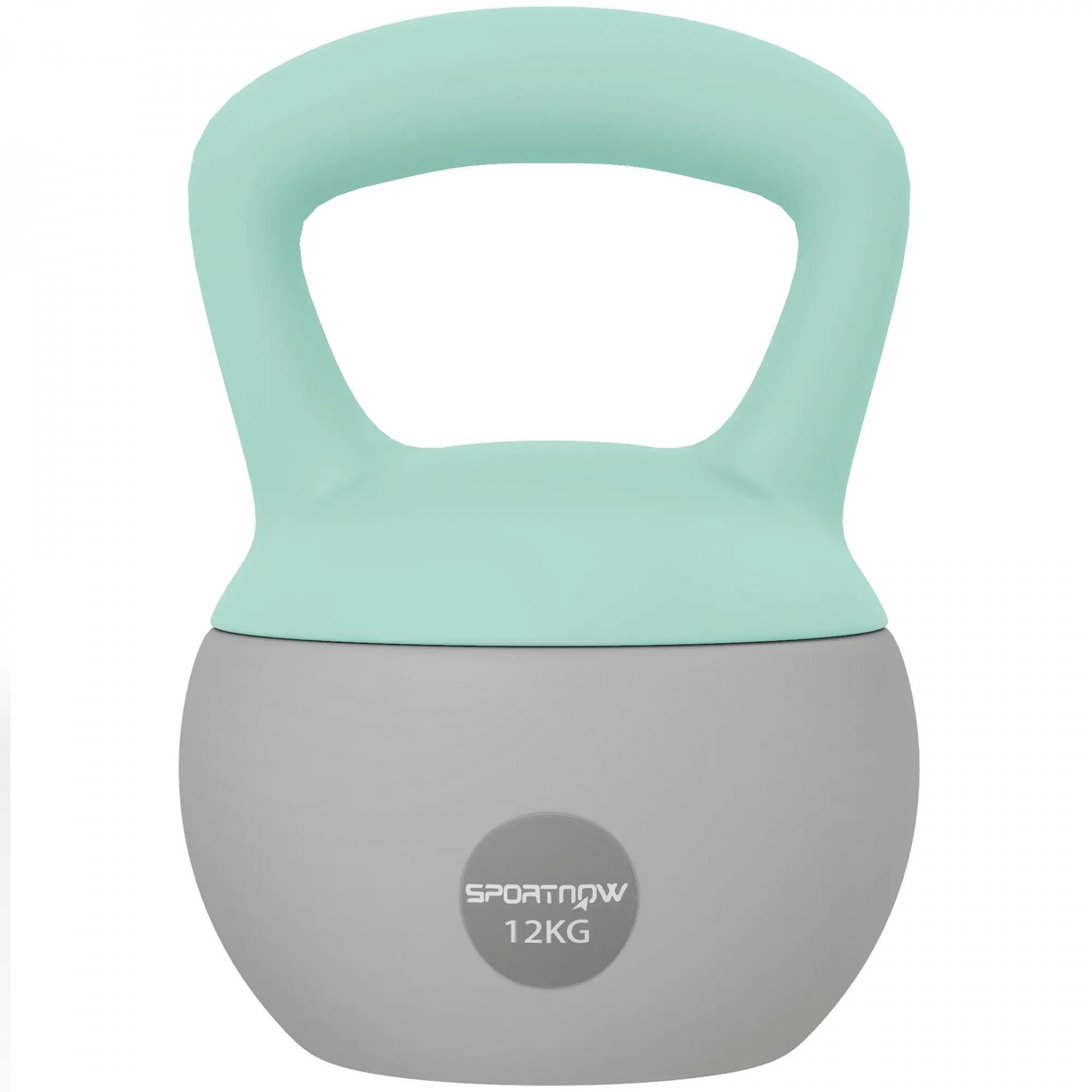 Pesa Rusa 12 kg Kettlebell Relleno de Arena Metálica Mango Antideslizante para Entreno en Casa 21x21x30 cm Verde y Gris
