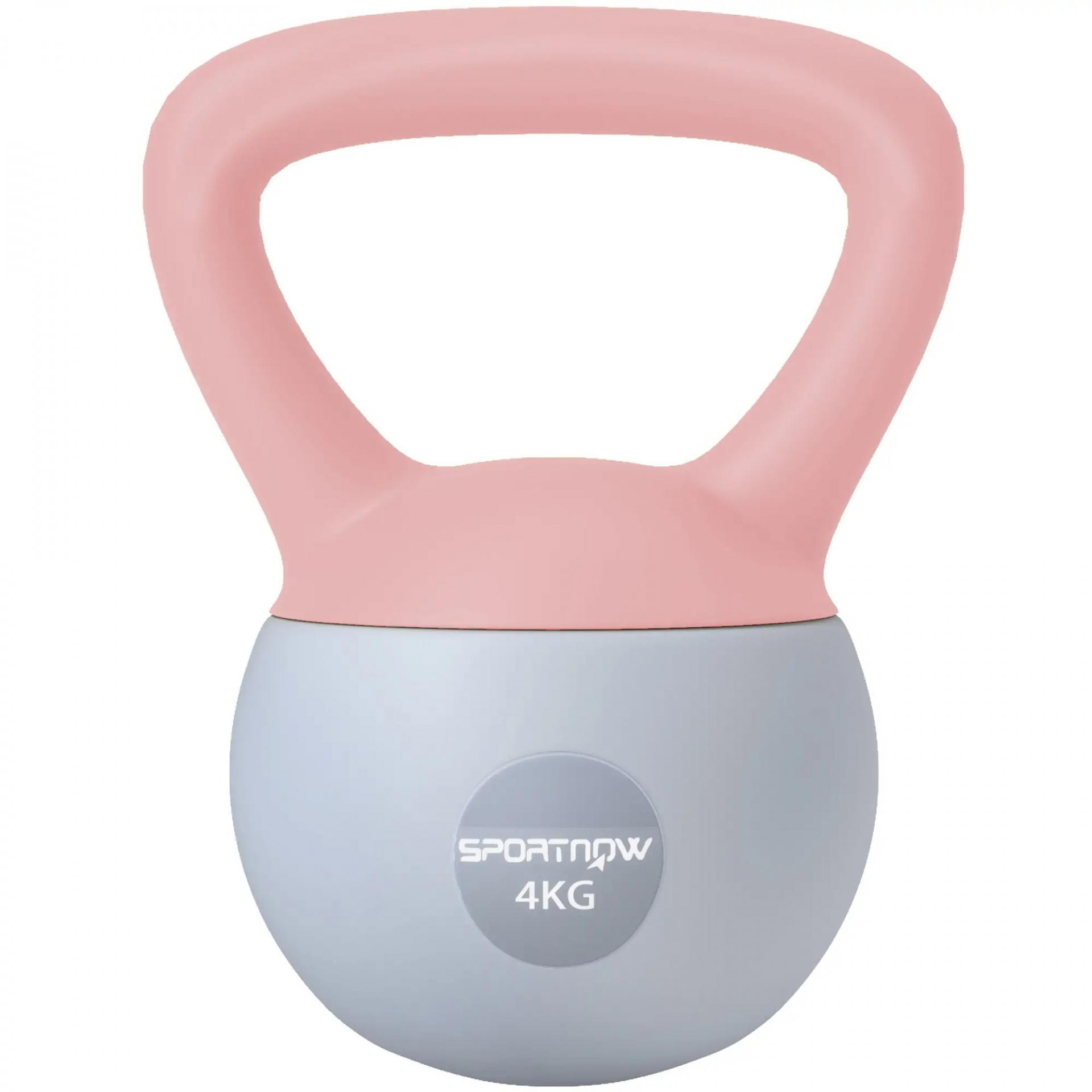 Pesa Rusa 4 kg Kettlebell Relleno de Arena Metálica y Mango Antideslizante para Entreno en Casa 19x15x25 cm Rosa y Gris