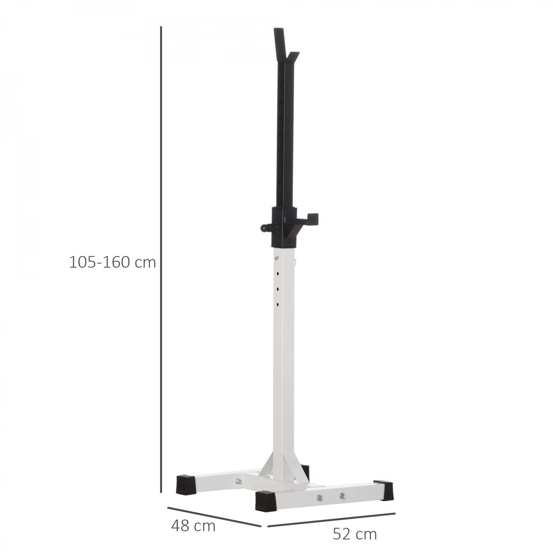 MEDIDAS TOTALES: Medidas de cada soporte para pesas: 52x48x105-160 cm (LxANxAL). Altura ajustable de cada barra: 105-160 cm. Peso máximo soportado: 150 kg