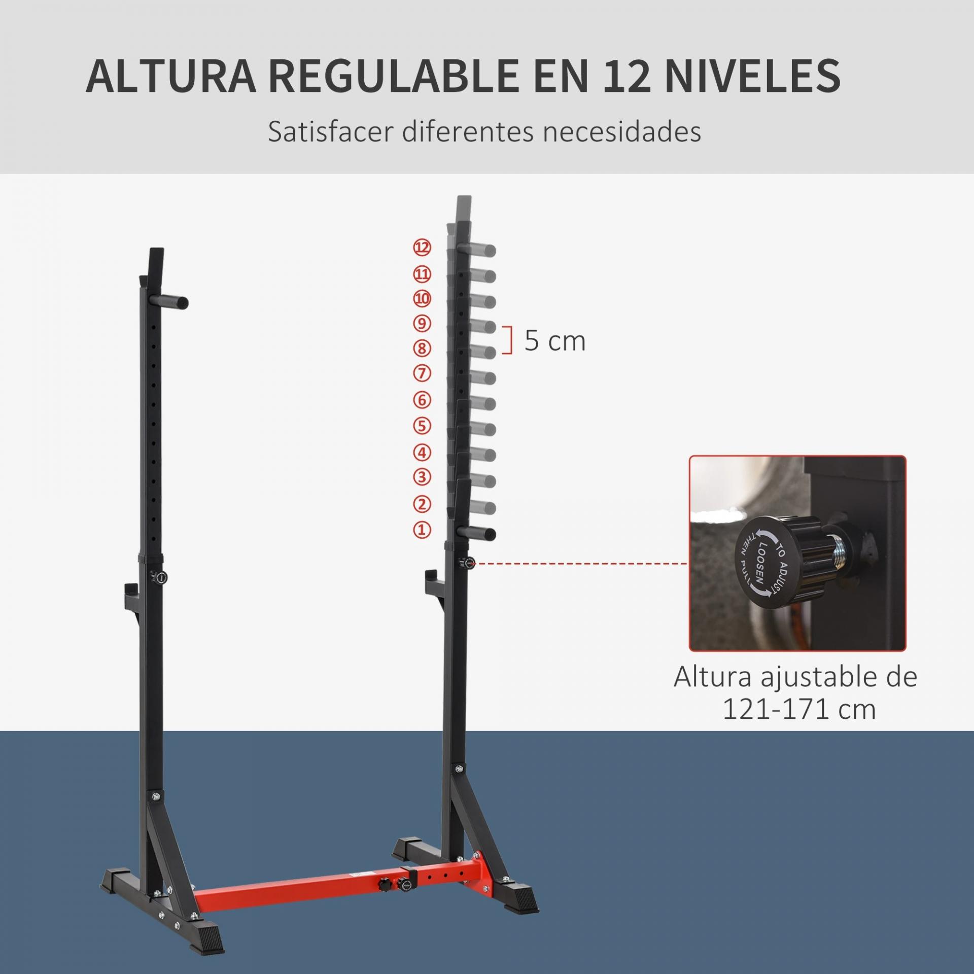 Soporte para Pesas Estante Soporte Barra Pesas Ajustable para Ejercicios Sentadillas en Hogar y Oficina Carga 150 kg de Acero Altura Regulable de 121-171 cm Negro y Rojo