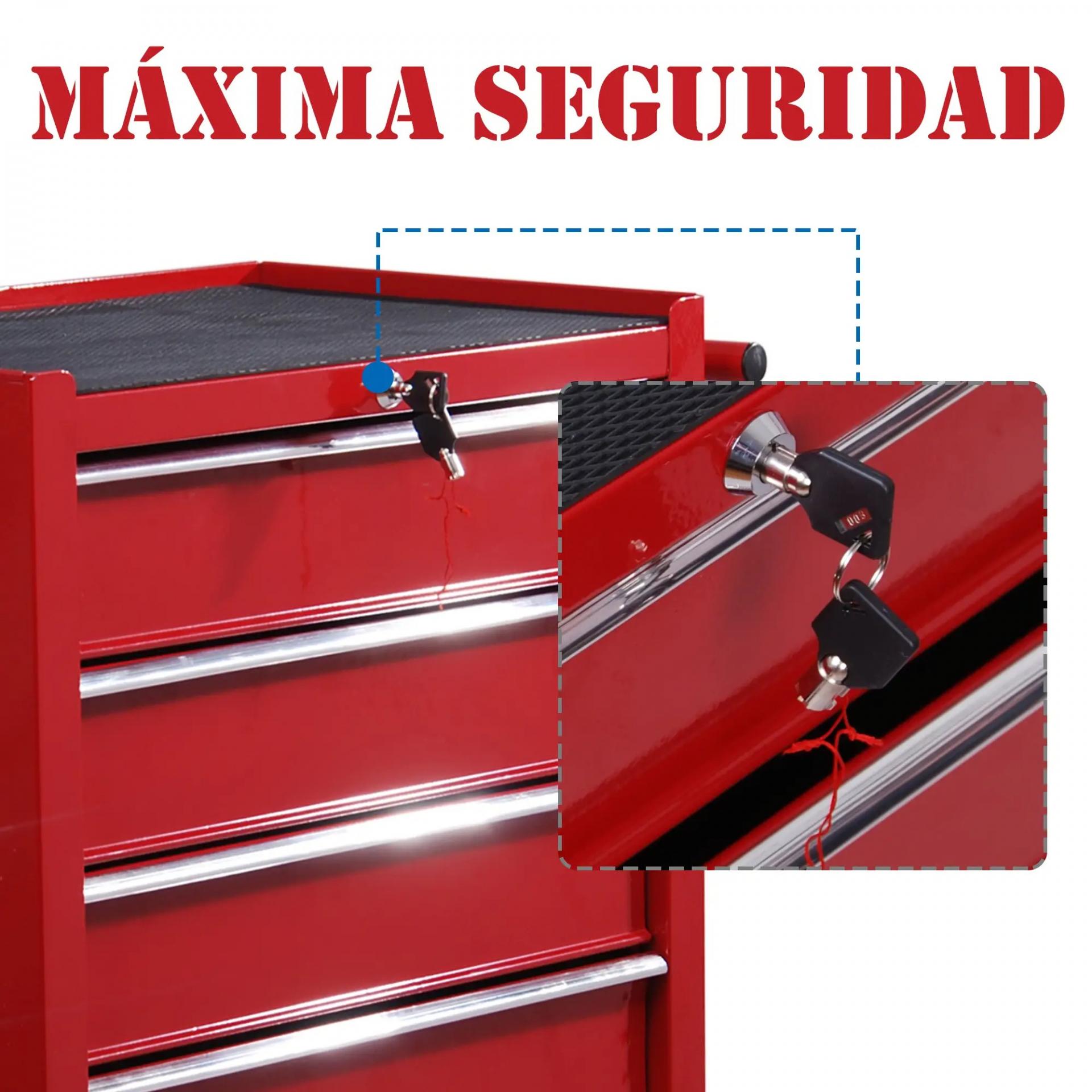 - BLOQUEABLE: La seguridad del carro de taller está garantizada con 2 llaves. Así que puedes guardar las herramientas de forma segura.