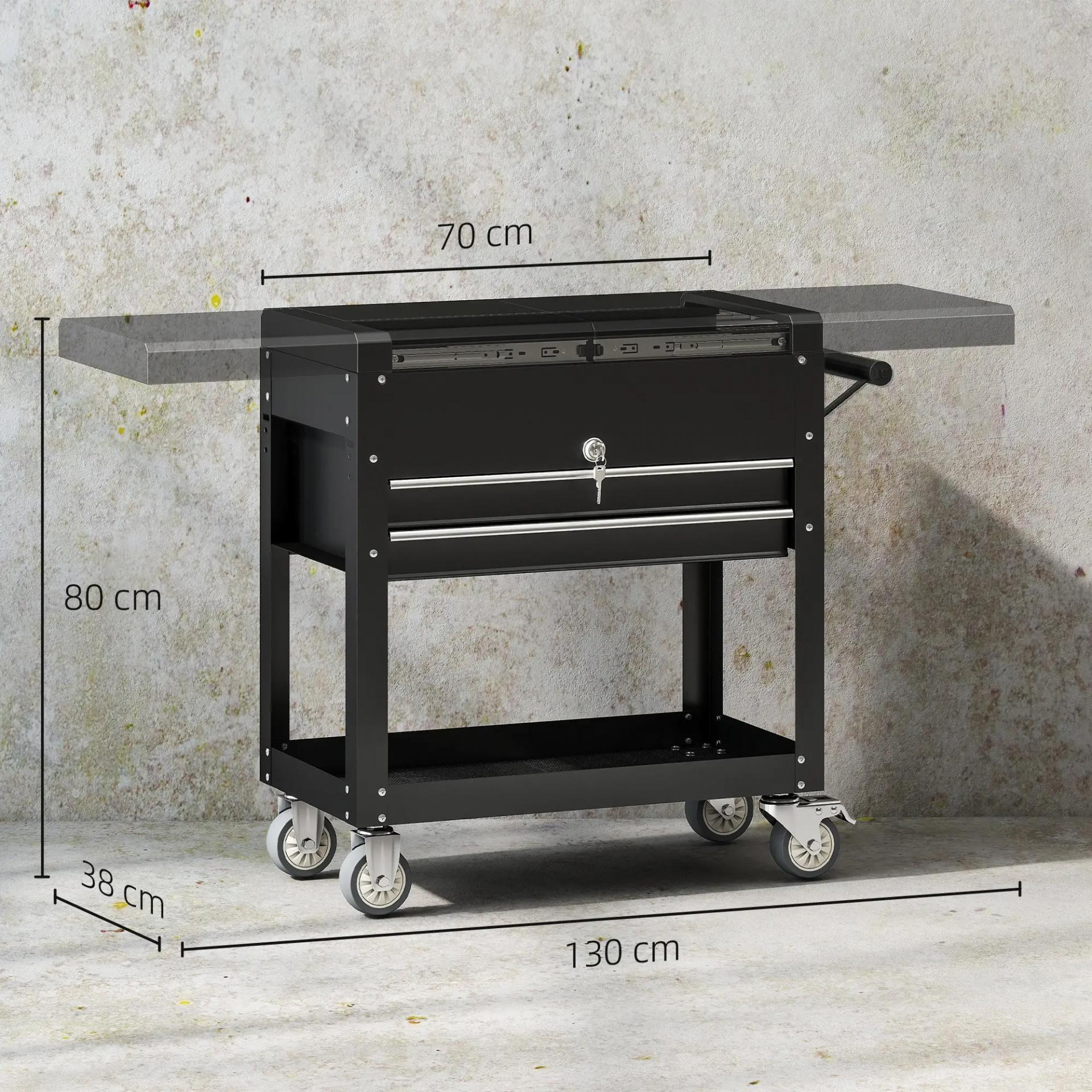 Carro de Herramientas con Ruedas Carro de Taller Móvil con Tapa Deslizante 2 Cajones con Cerradura Bandeja Negro