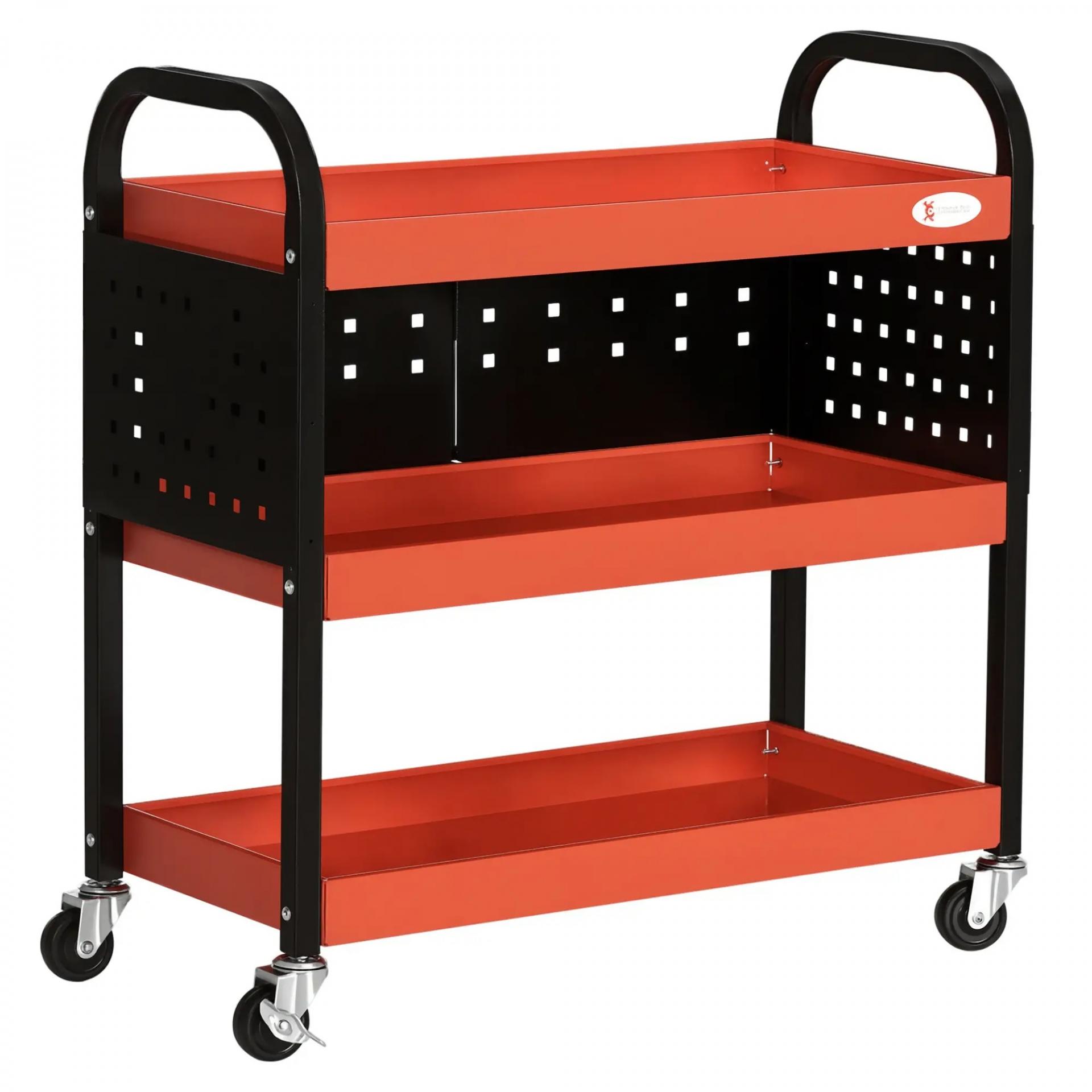 Carro de Herramientas con 3 Estantes Paneles Perforados y Ruedas con Freno para Garaje Taller Almacén 75x35x80 cm Negro