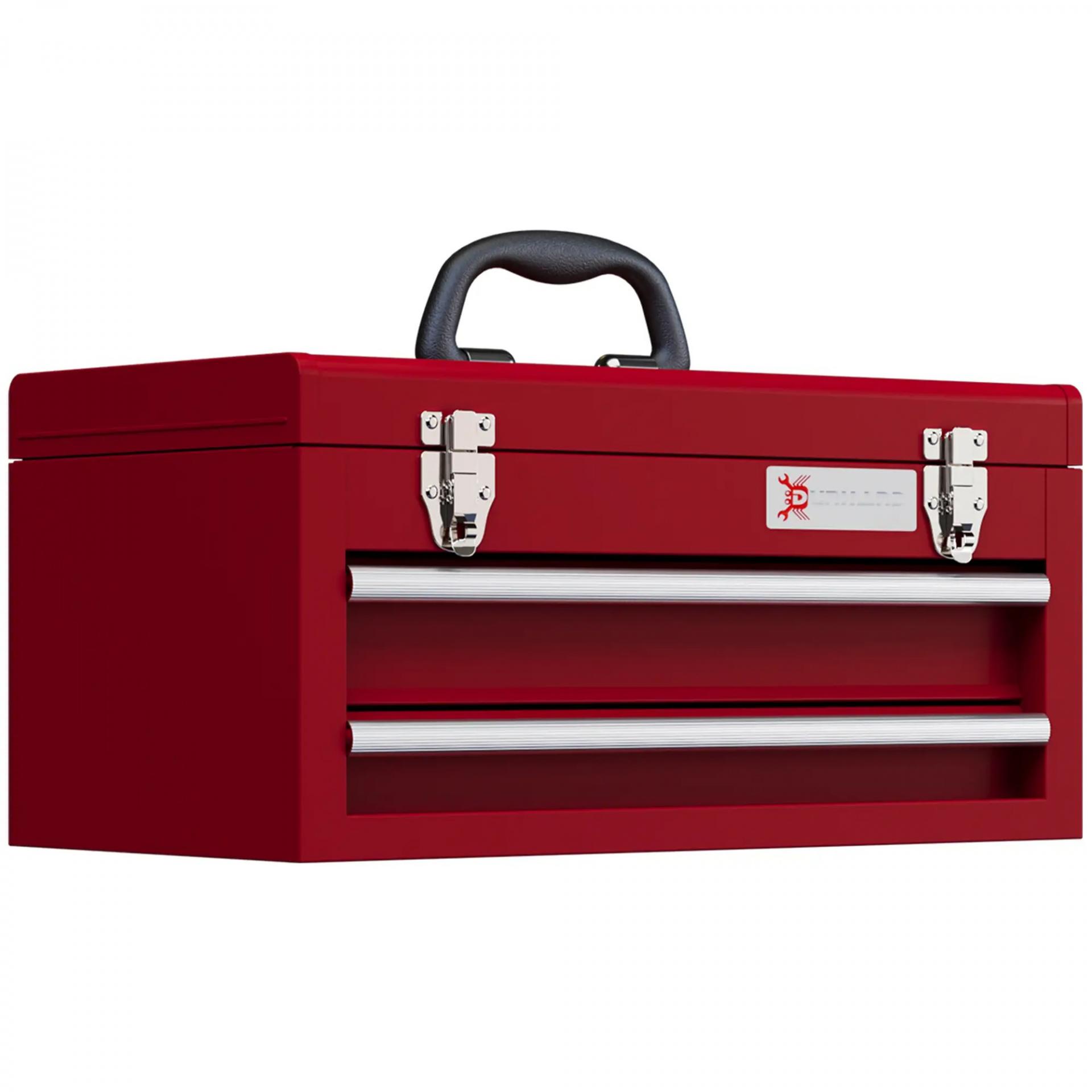 Caja de Herramientas de Acero con 2 Cajones Bandeja Tapa Abatible Cierres Metálicos y Asa 46x24x22 cm Rojo