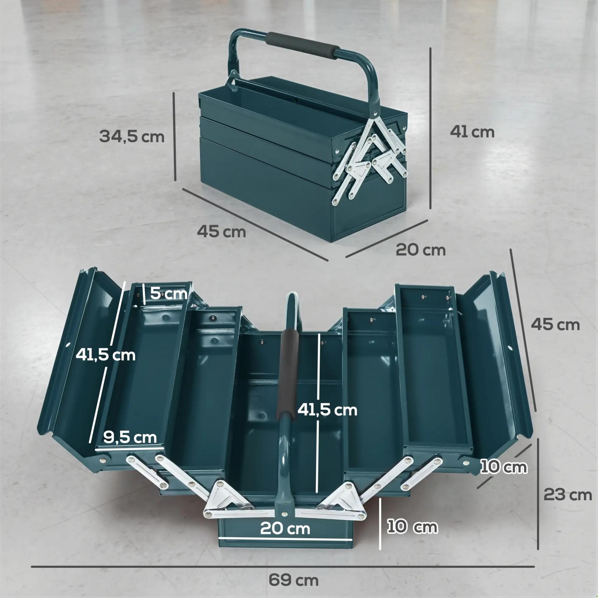 Caja de Herramientas Metálica Plegable con 5 Bandejas y Asa para Taller Garaje 45x20x34,5 cm Verde Oscuro
