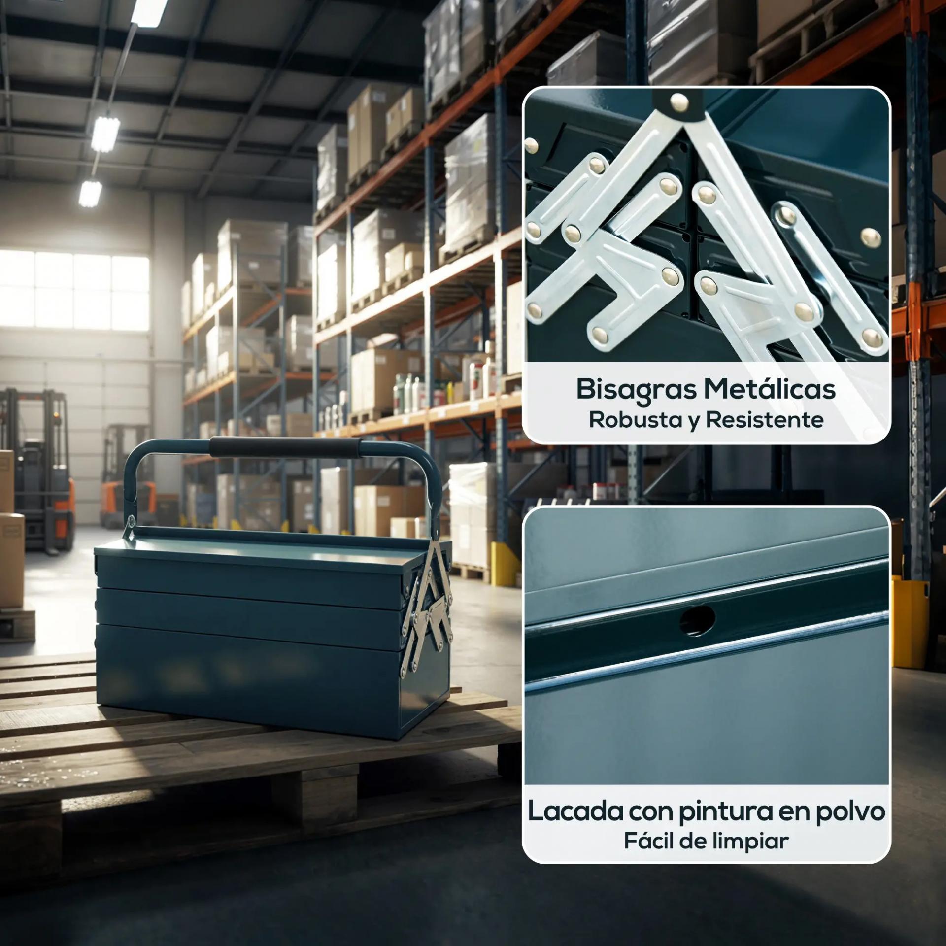 - CON 5 BANDEJAS: Accede fácilmente a tus herramientas gracias a las bandejas plegables de esta caja. Su diseño retráctil con conectores metálicos laterales te permite mantener todo bien organizado y siempre a mano