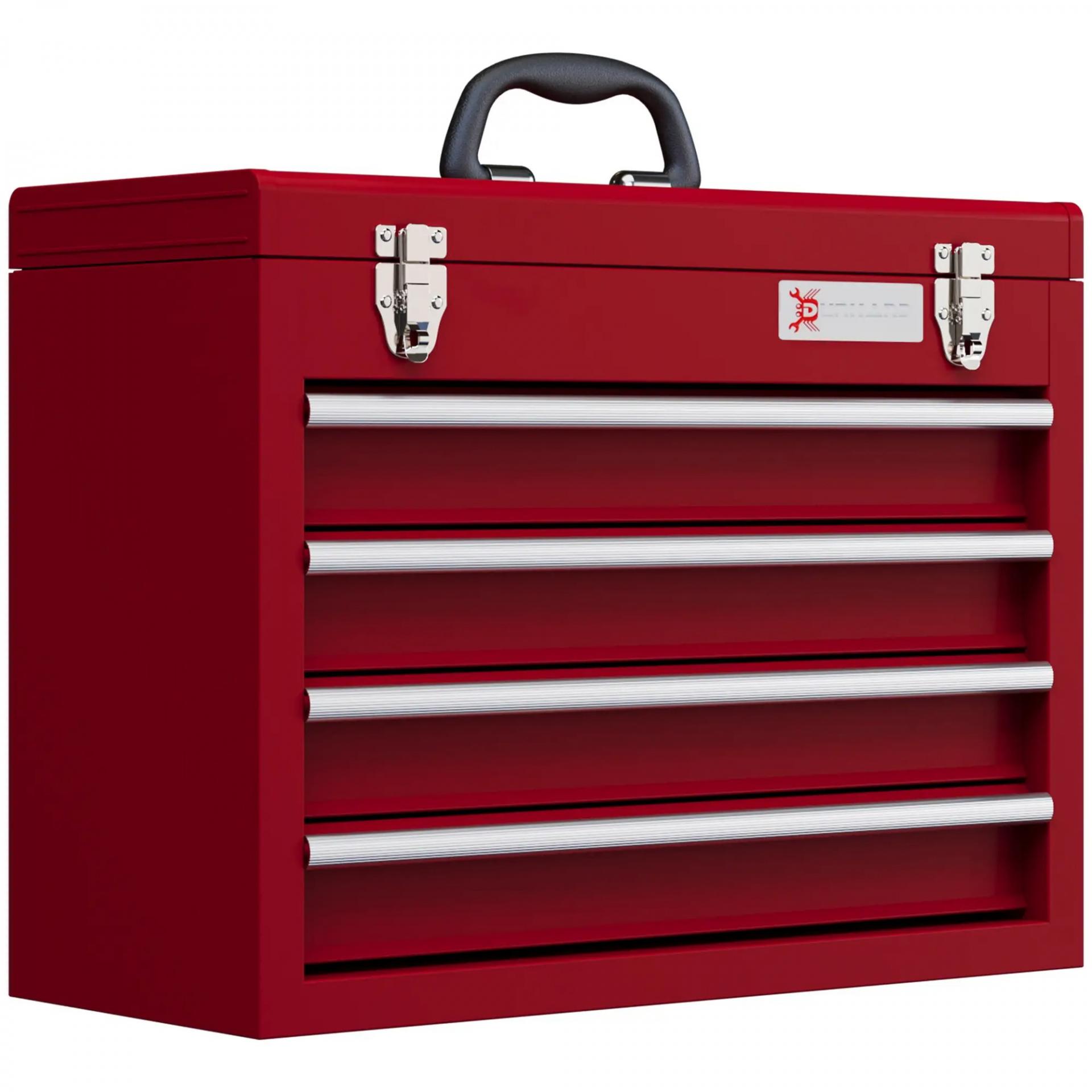 Caja de Herramientas de Acero con 4 Cajones Bandeja Tapa Abatible y Cierres Metálicos 51x22x39,5 cm Rojo