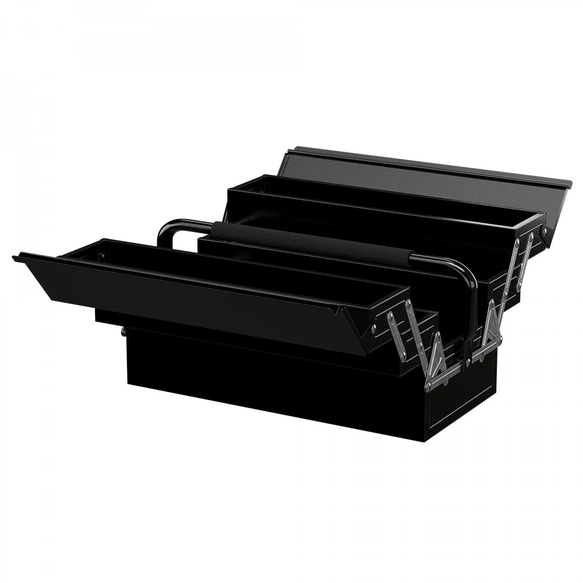 Caja de Herramientas Metálica Plegable con 5 Bandejas y Asa para Taller Garaje 45x20x34,5 cm Negro