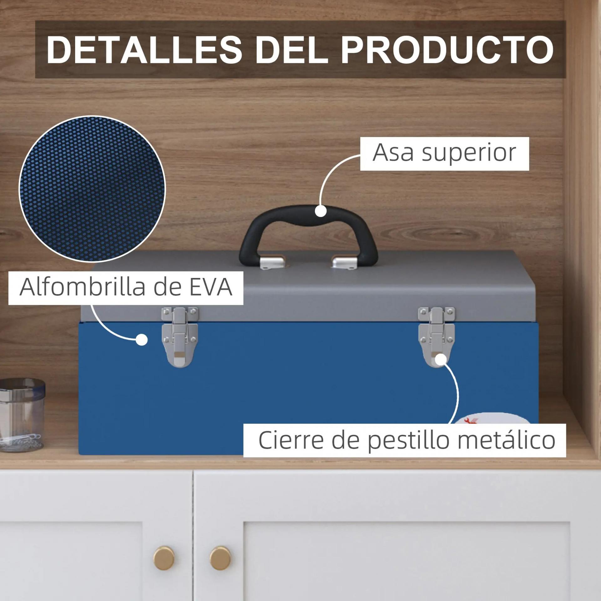 ESTRUCTURA RESISTENTE: Esta caja de herramientas de acero con pintura en polvo es duradera y robusta. Soporta hasta 20 kg, asegurando un almacenamiento seguro para tus herramientas