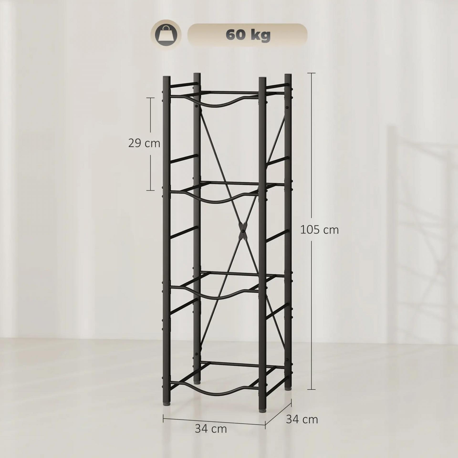 - MEDIDAS TOTALES: 34x34x105 cm (LxANxAL). Carga máxima: 60 kg (15 kg por estante). Este soporte para garrafones de agua requiere montaje (incluye manual de instrucciones)