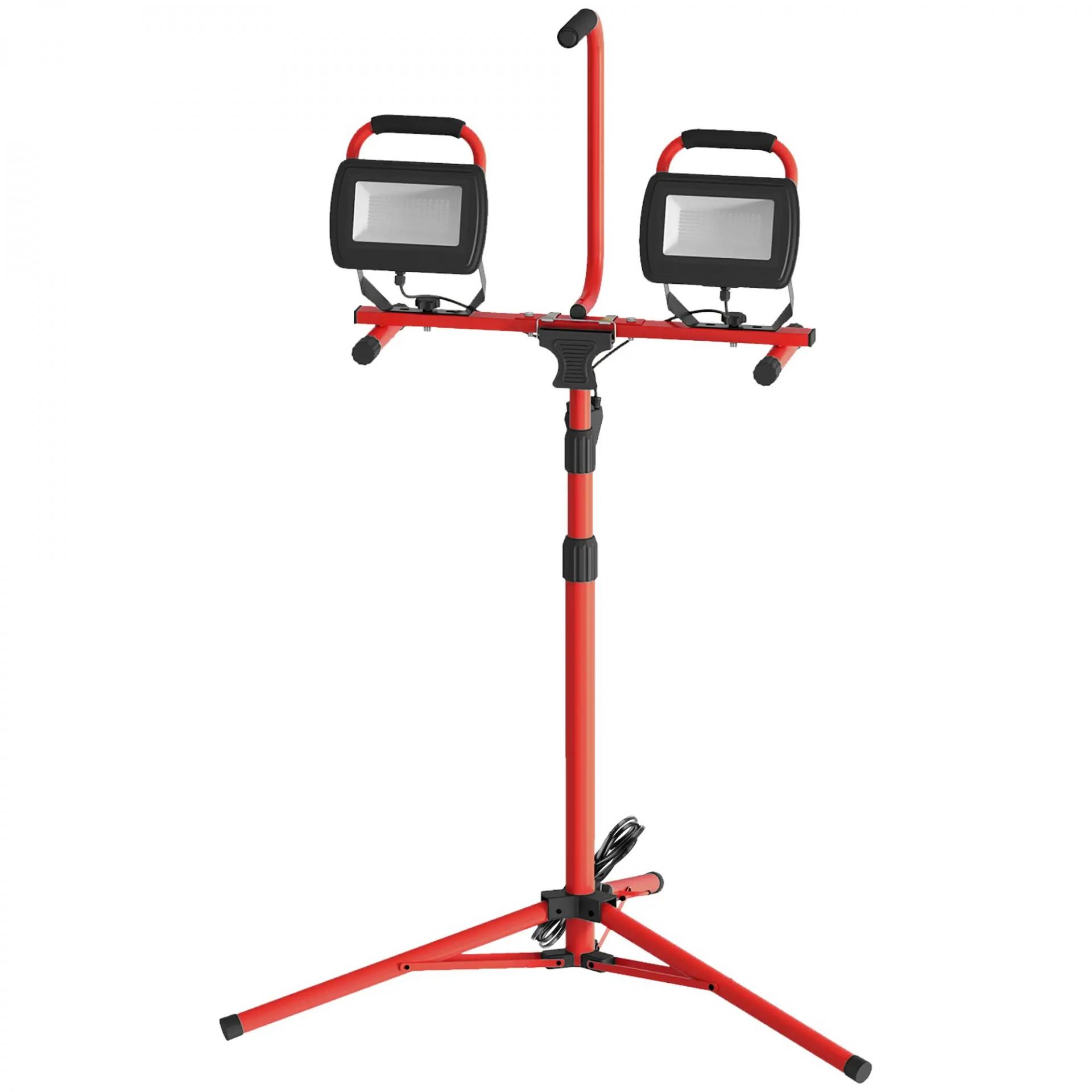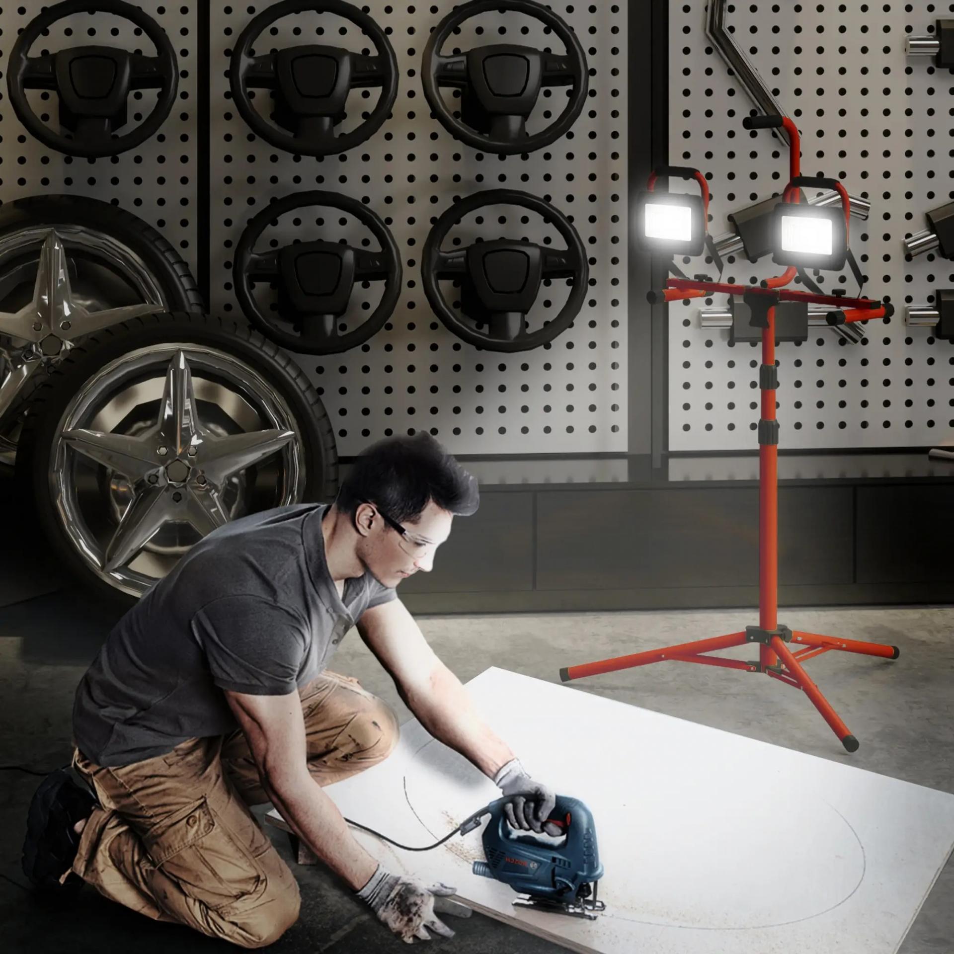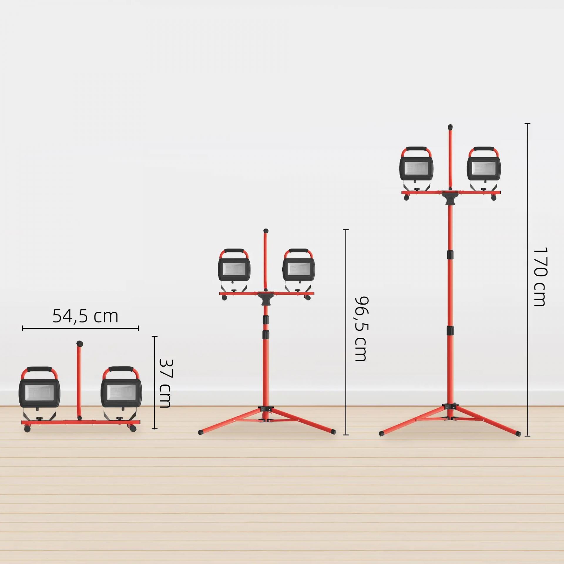 Foco LED Doble con Trípode Plegable 8500 Lúmenes IP65 6500K y Cabezas Ajustables para Trabajo Interior y Exterior Rojo