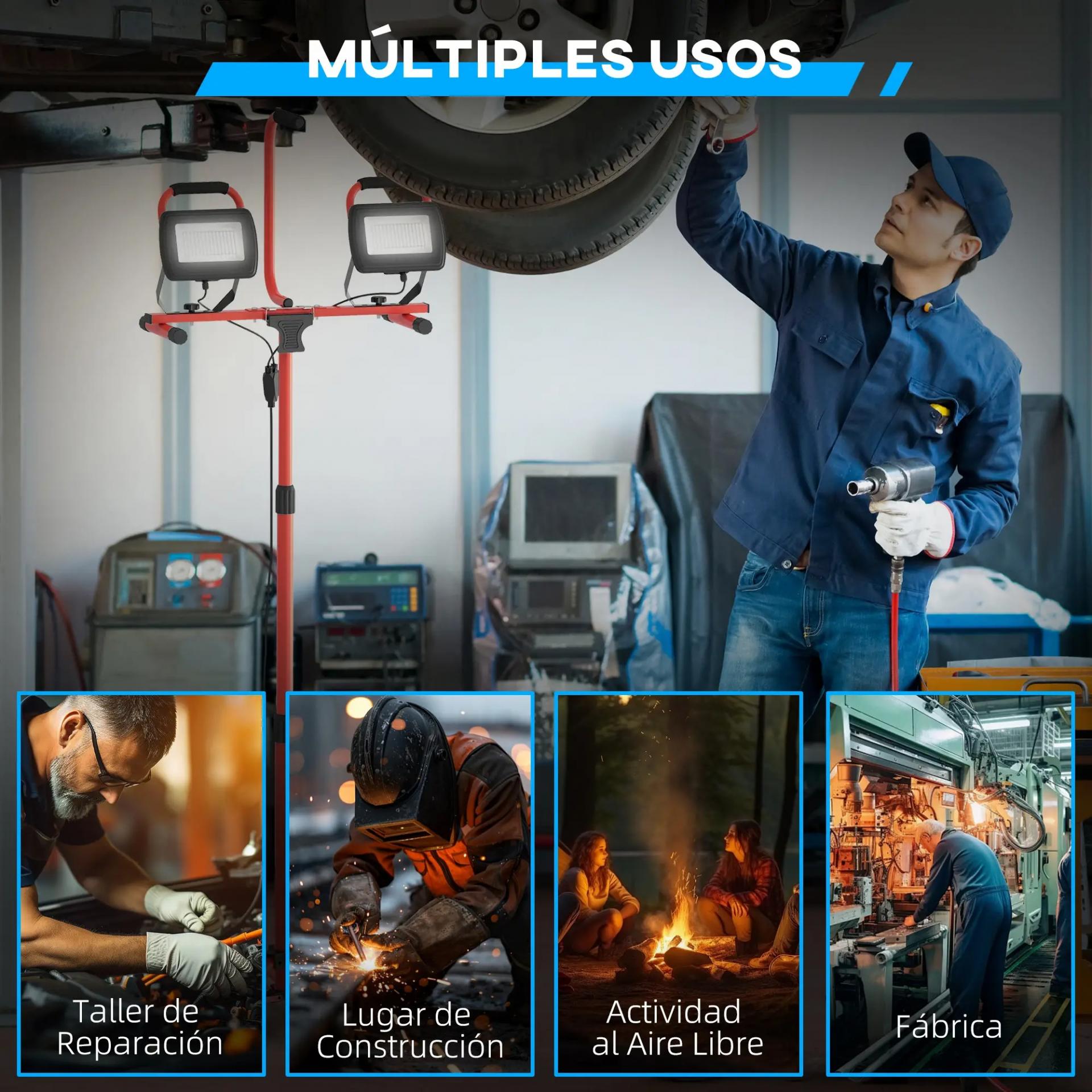 - VERSÁTIL Y PRÁCTICO: Con un diseño de doble cabeza y un mango fácil de manejar, este foco se puede emplear con o sin su trípode metálico incluido, ofreciendo varias opciones de montaje para adaptarse a diferentes situaciones de trabajo