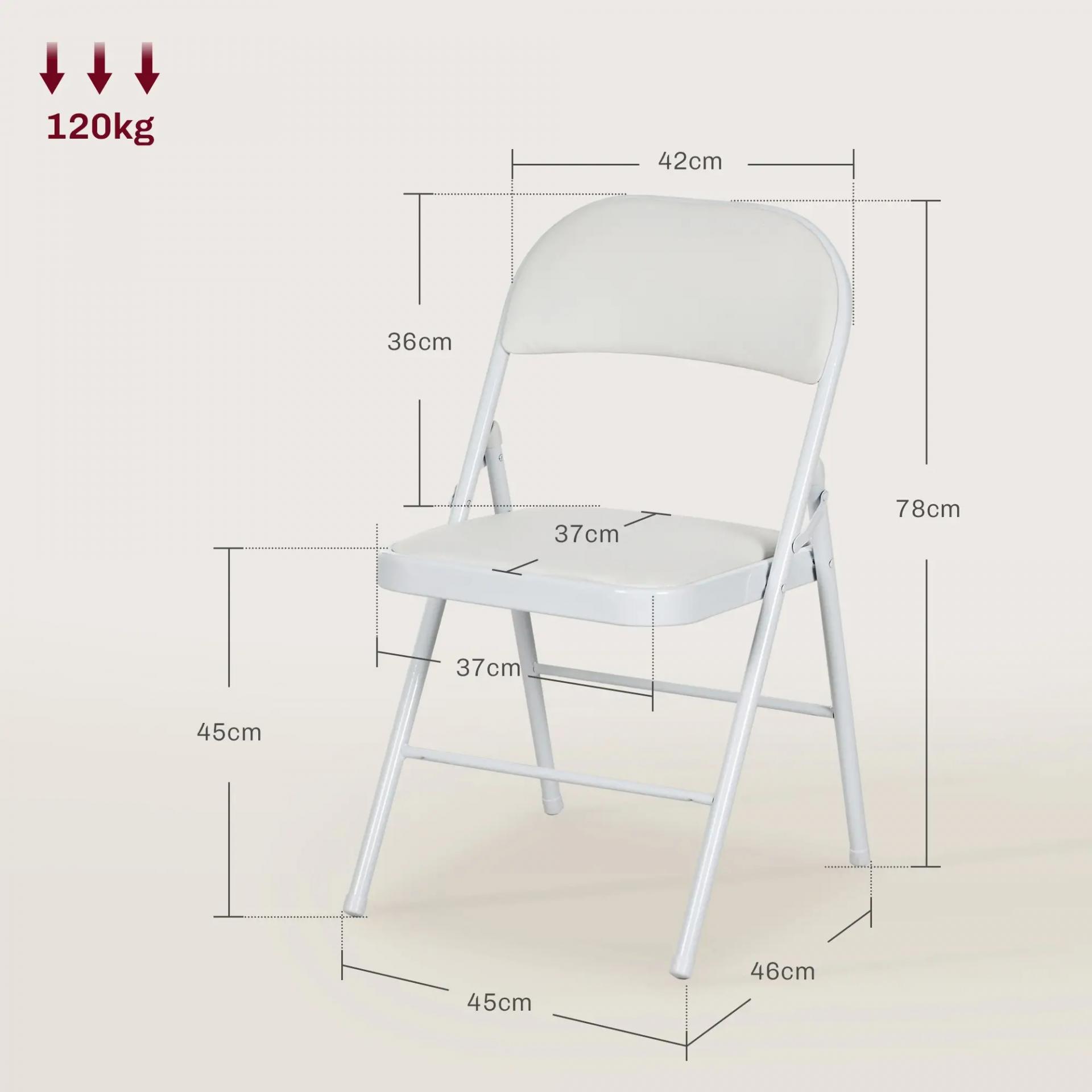 MEDIDAS TOTALES: Cada una de estas sillas plegables mide 45x46x78 cm (LxANxAL). Medidas del asiento: 37x37x45 cm (LxANxAL). Peso máximo soportado: 120 kg (cada una). Listas para usar, no requieren montaje