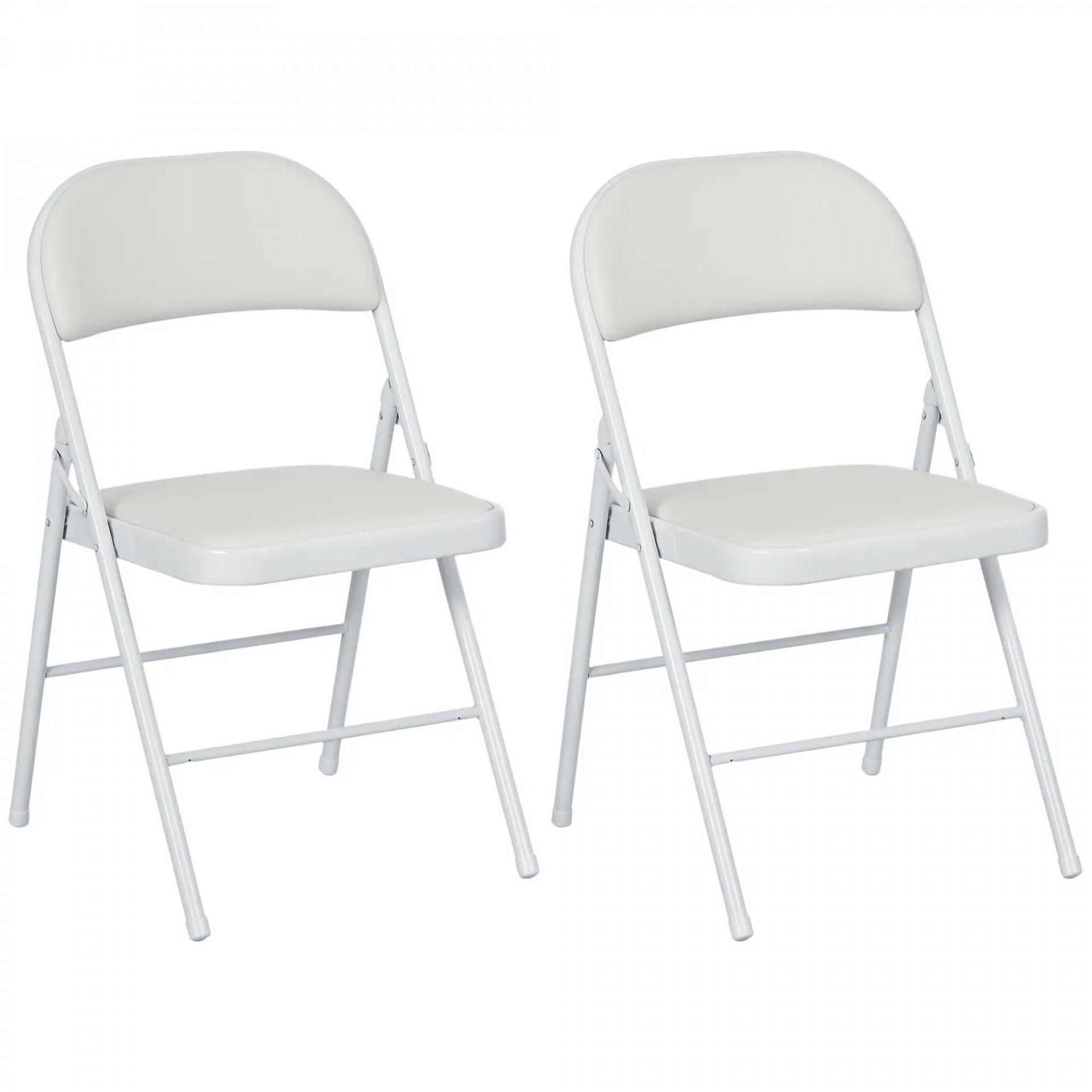 Juego de 2 Sillas Abatibles con Respaldo y Estructura de Acero para Oficina Estudio 45x46x78 cm Blanco
