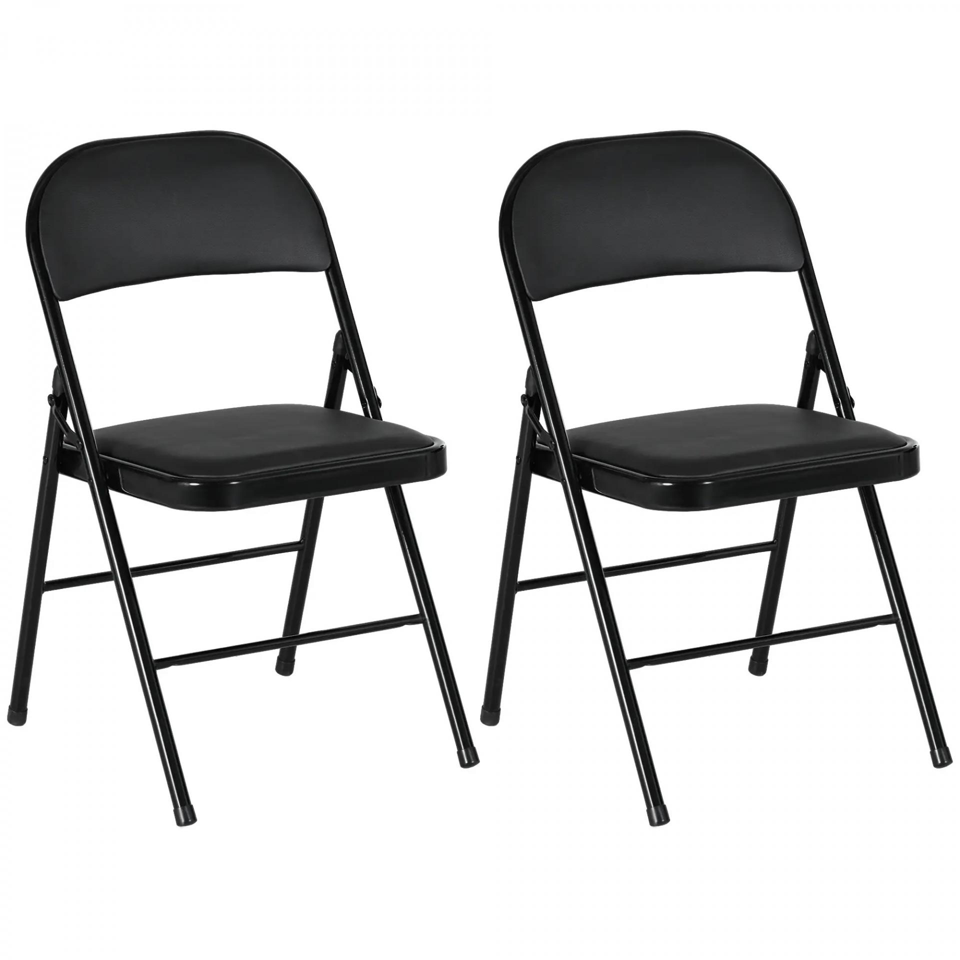 Juego de 2 Sillas Abatibles con Respaldo y Estructura de Acero para Oficina Estudio 45x46x78 cm Negro