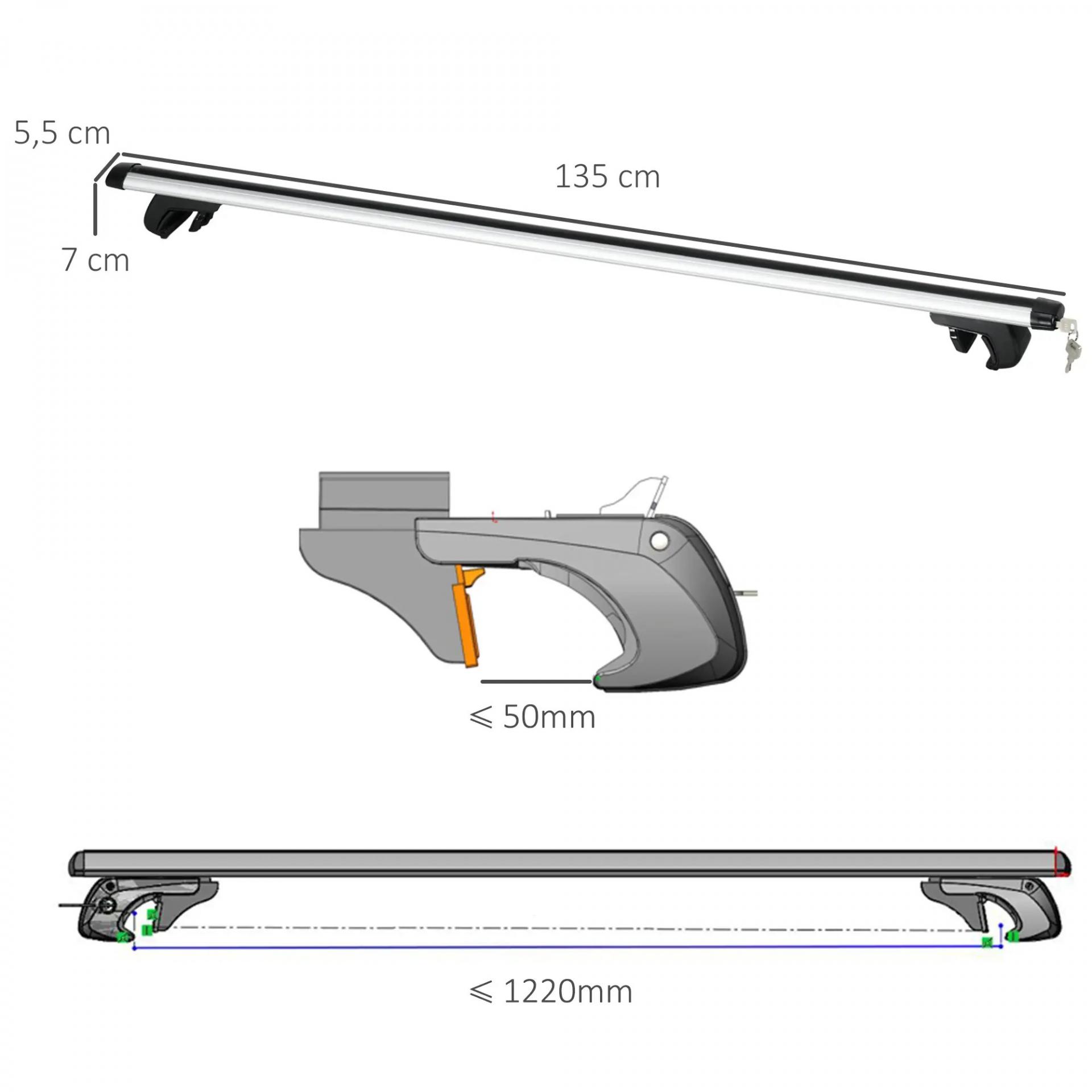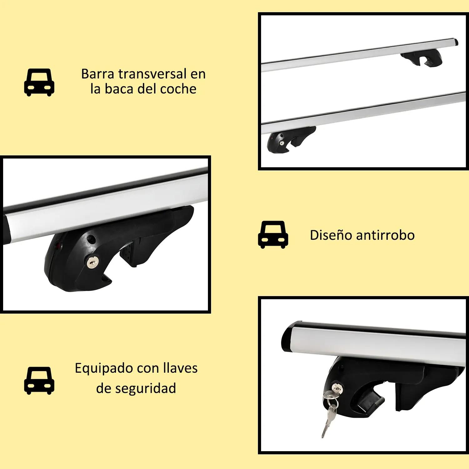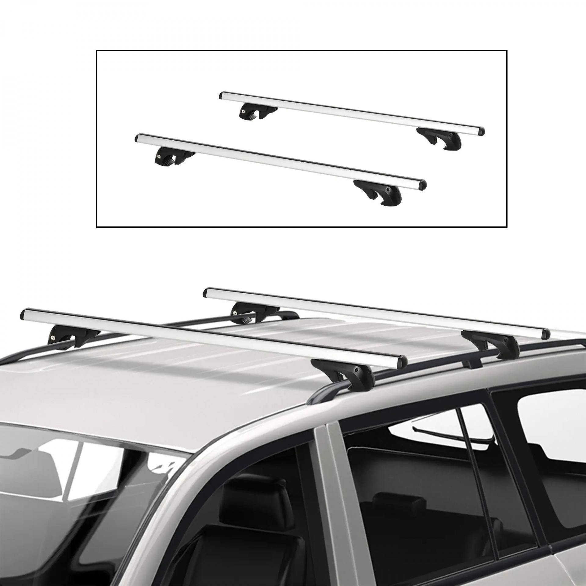 Barras de Techo Universales para Vehículos de Aluminio Bacas Portaequipajes Coche Automóvil Baca para Coche Universales con Cerradura Carga 75 kg 135 cm Plata