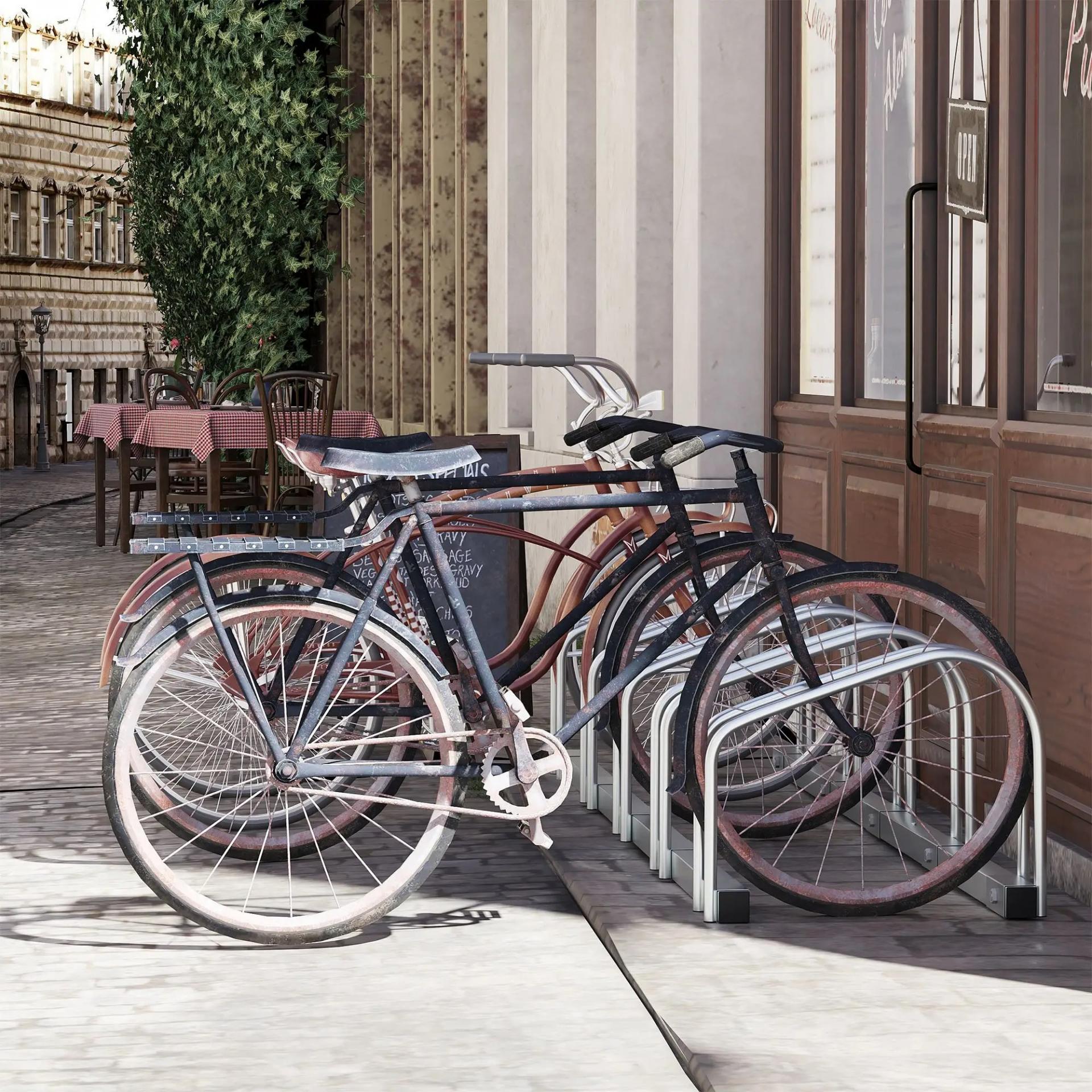 Aparcamiento para 5 Bicicletas Estacionamiento para Aparcar Bicicletas para Interior y Exterior 145x33x27cm Plata