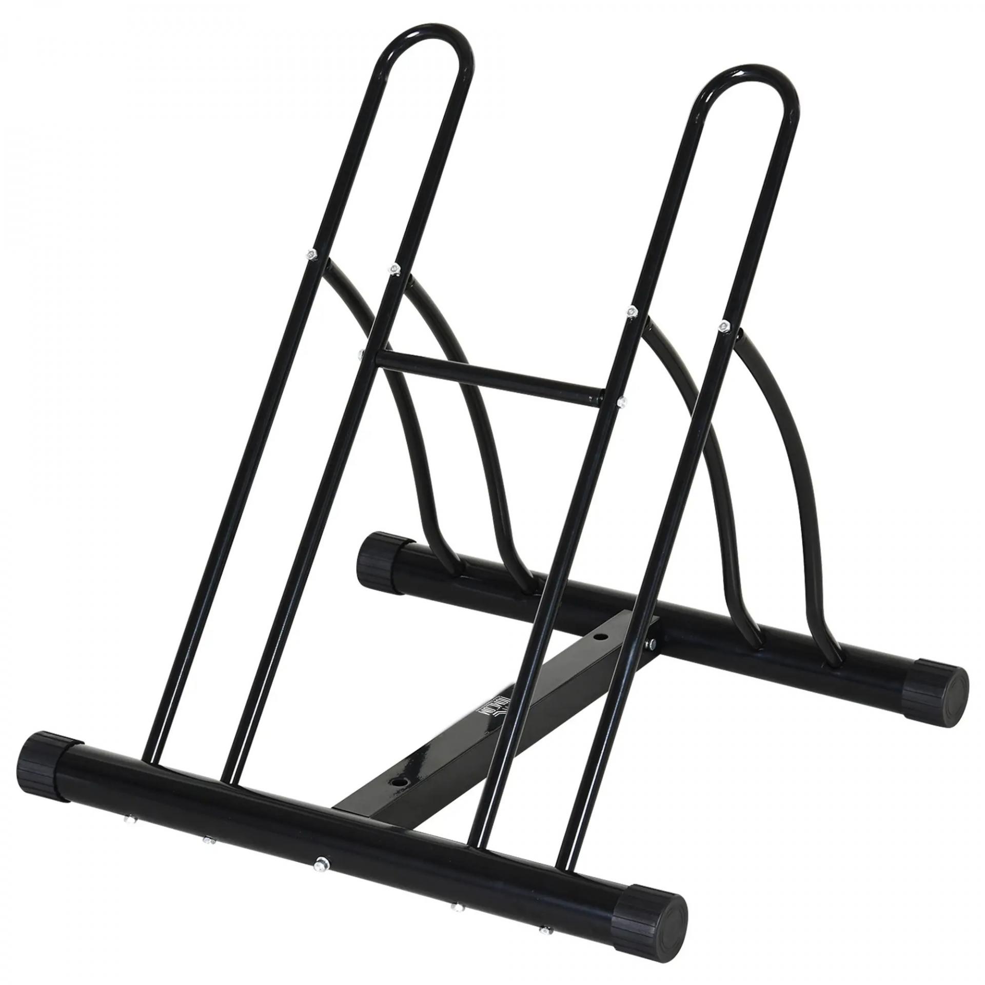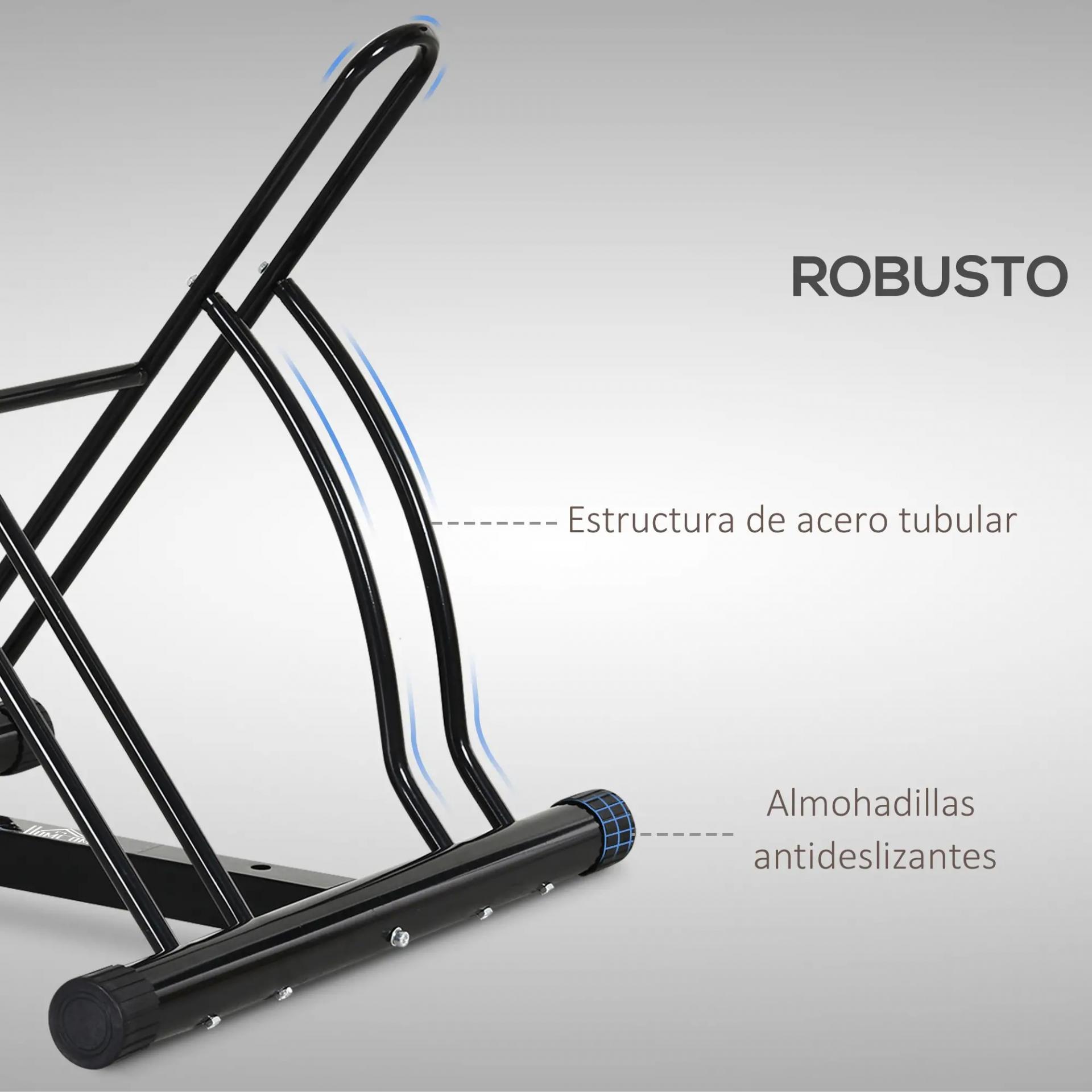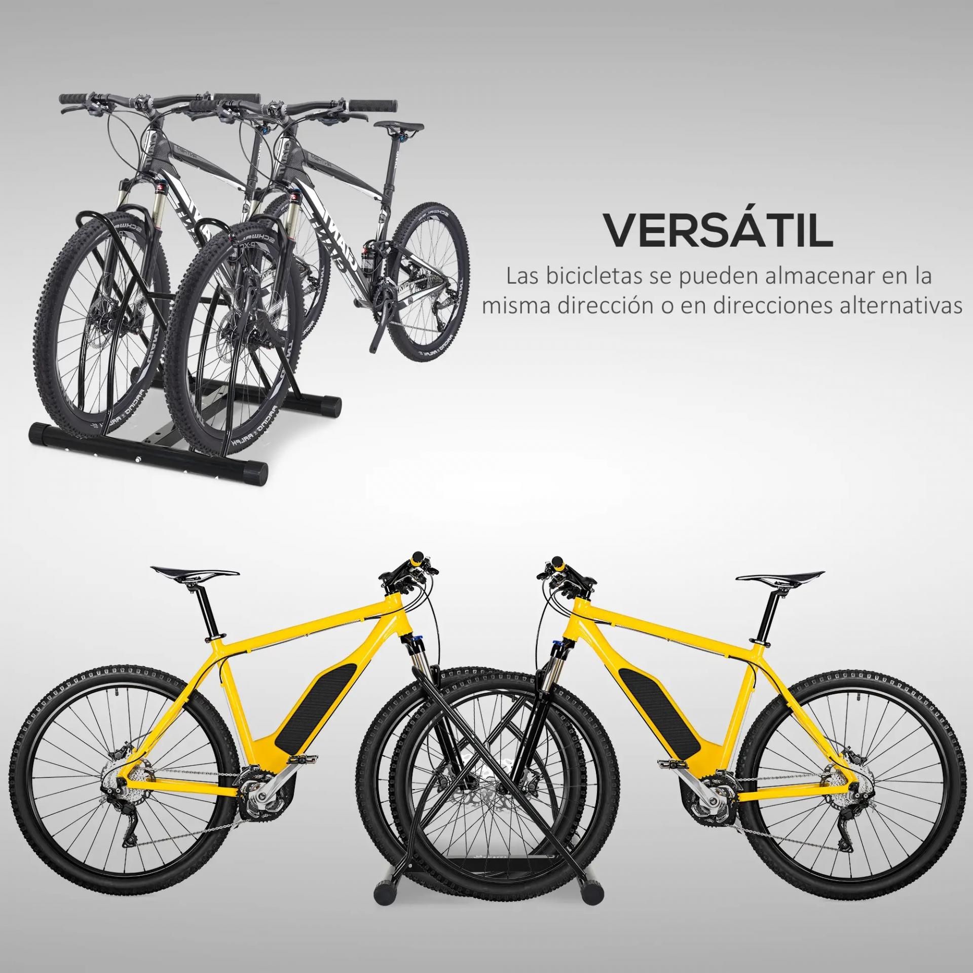 Soporte para Aparcar 2 Bicicletas, Aparcamiento Estacionamiento para Bicis, Inferir 65mm de Ancho, Fácil de Montar, Almohadilla Antideslizante, Interior y Exterior, 60x54x57 cm, Negro