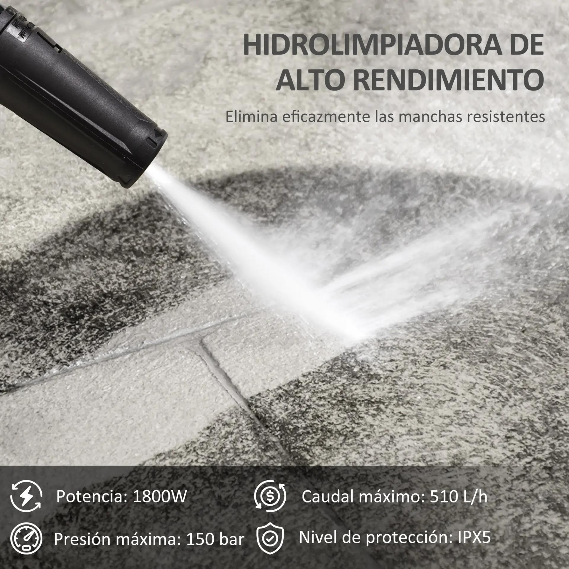 - MOTOR DE 1800 W Y PRESIÓN MÁXIMA DE 150 BAR: Con 1800 W de potencia y 150 bar de presión máxima, esta hidrolimpiadora de alta presión ofrece un caudal de hasta 510 litros por hora, lo que facilita la limpieza de superficies duras y difíciles