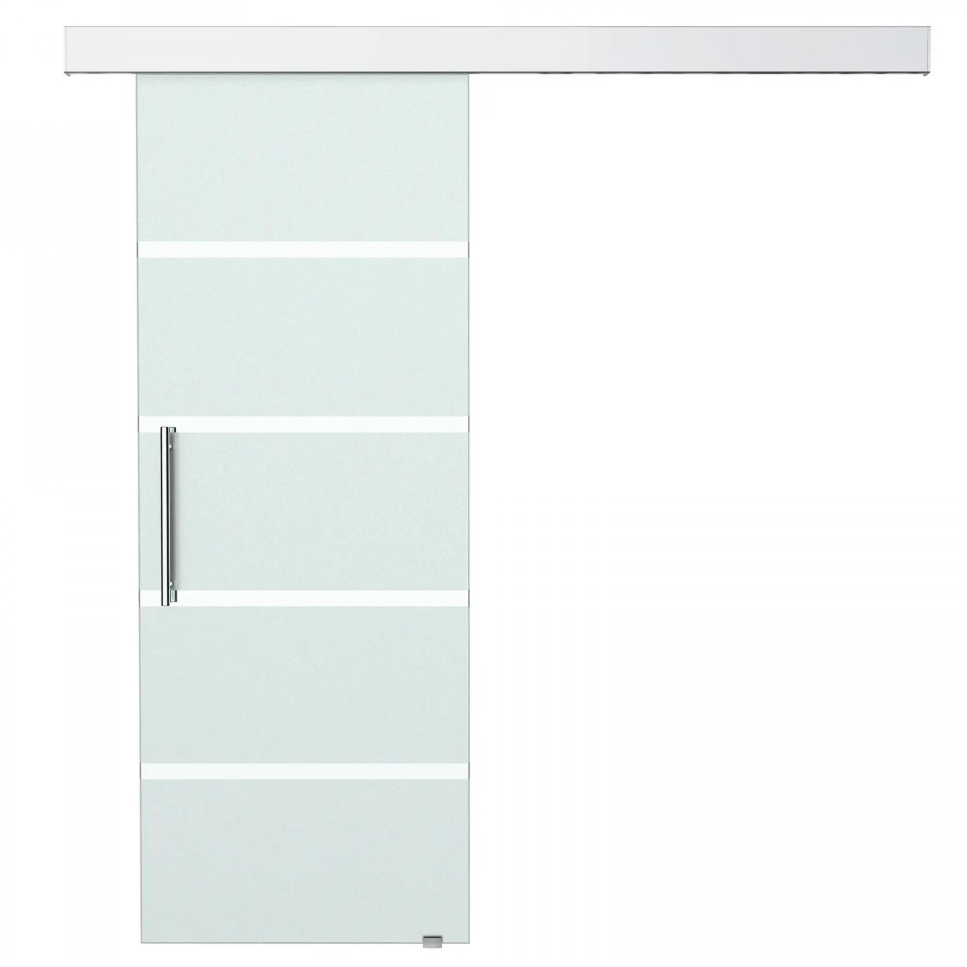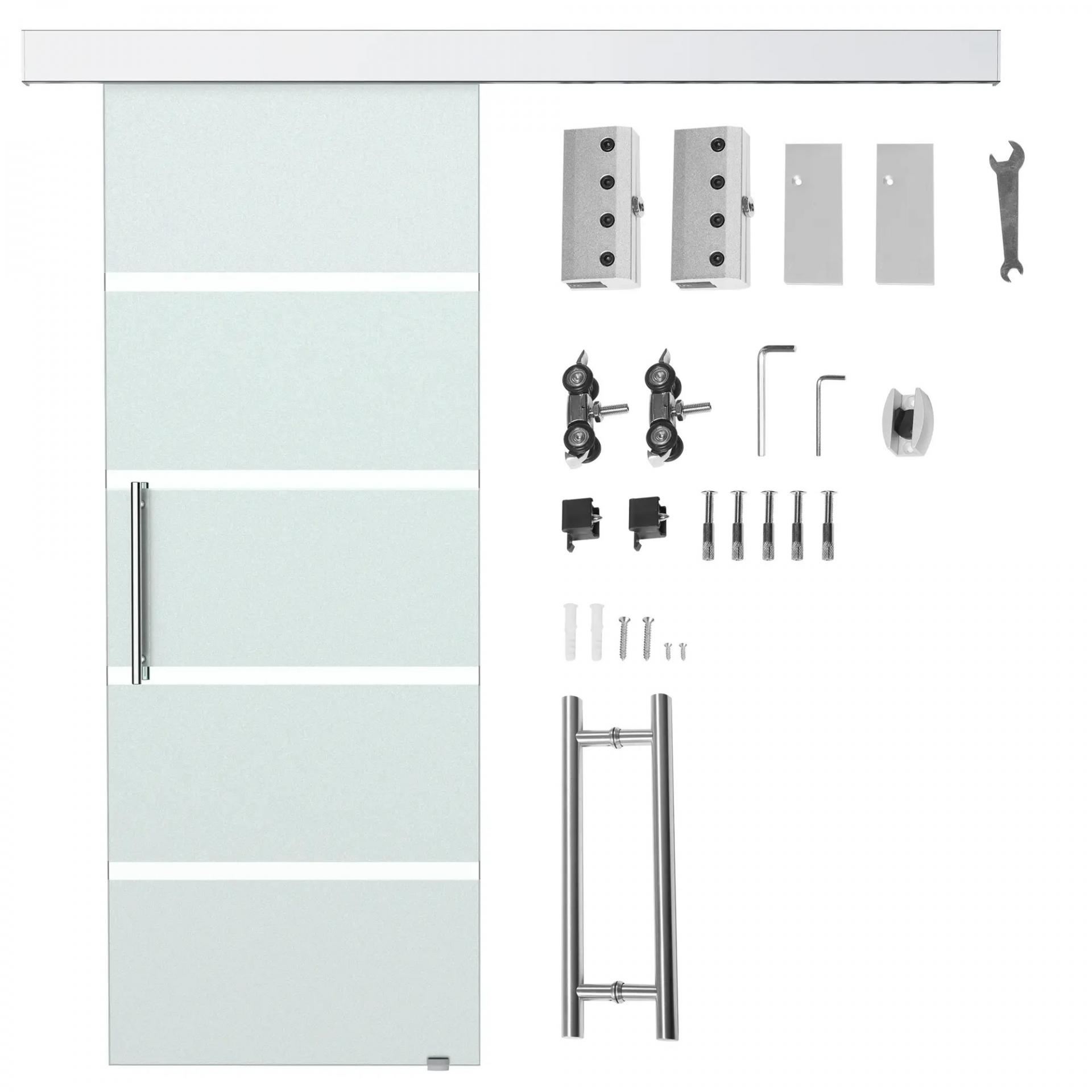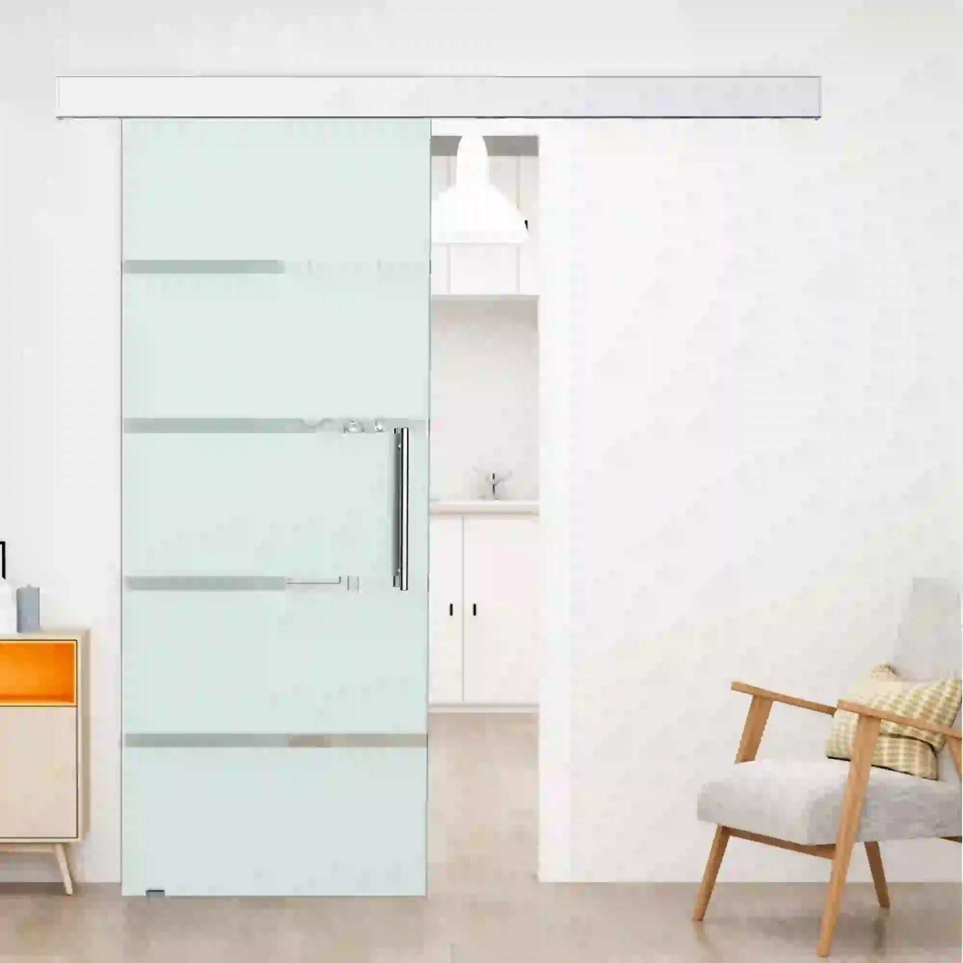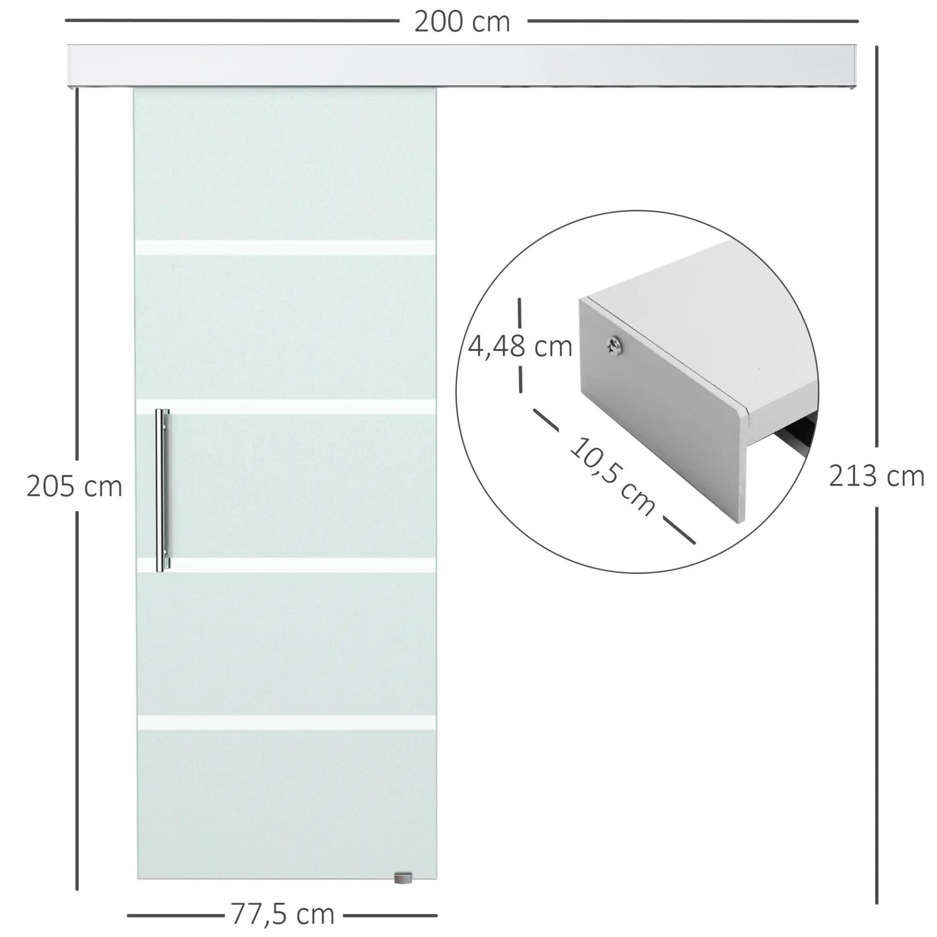 Puerta Corredera de Cristal 77,5x205 cm Puerta Corrediza Deslizante con Riel de Cristal de Seguridad Translúcido