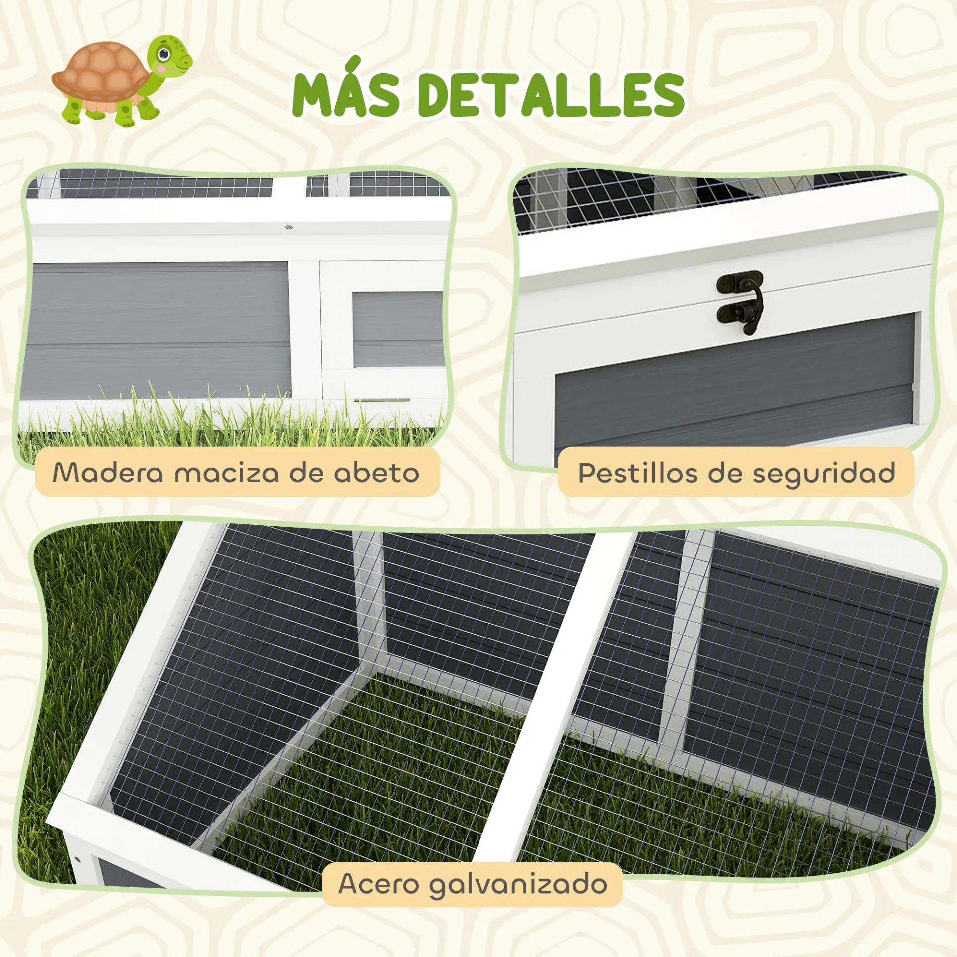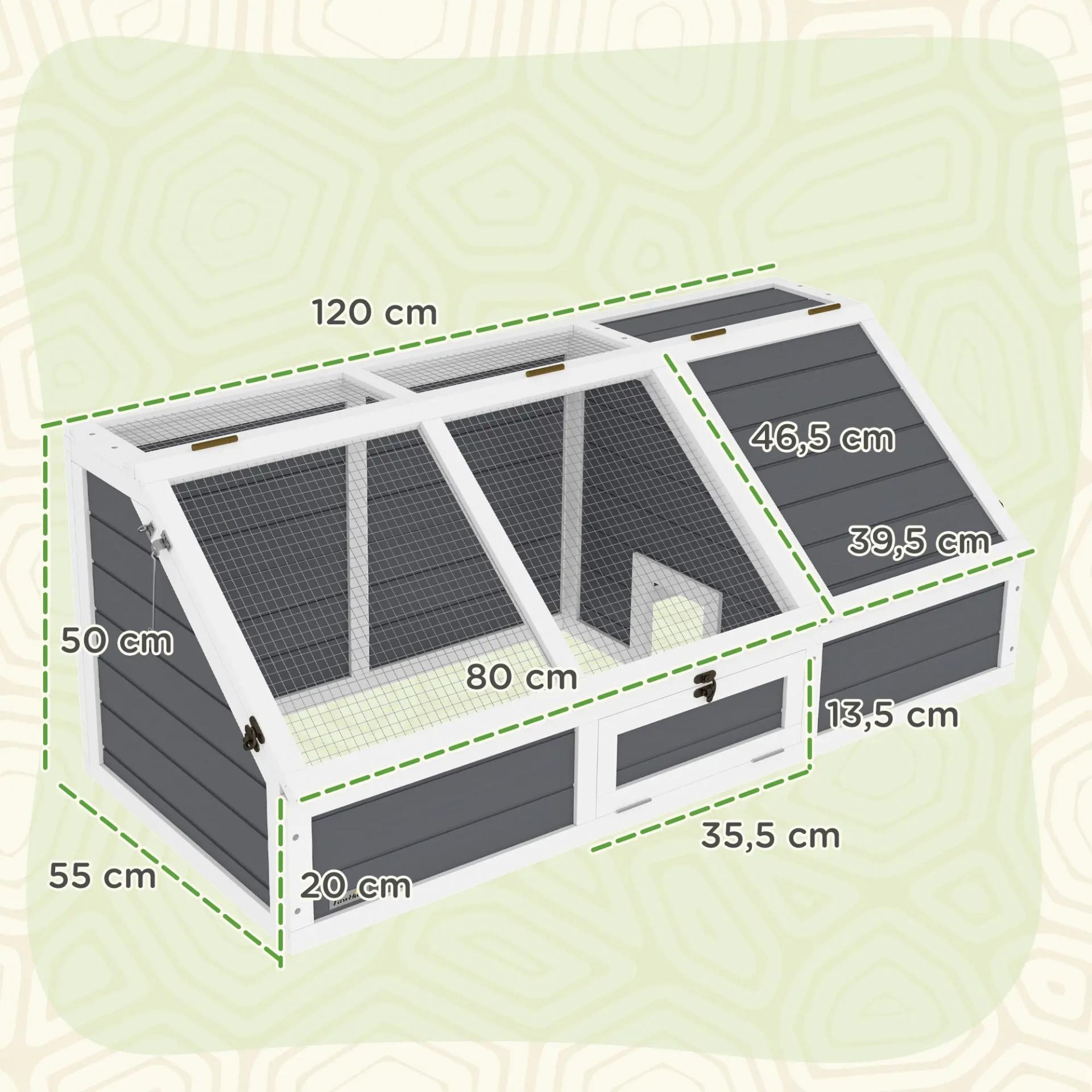 Casa para Tortugas de Madera sin Base con Tapas Abatible Puerta Frontal Abrible y Pestillos 120x55x50 cm Gris Claro