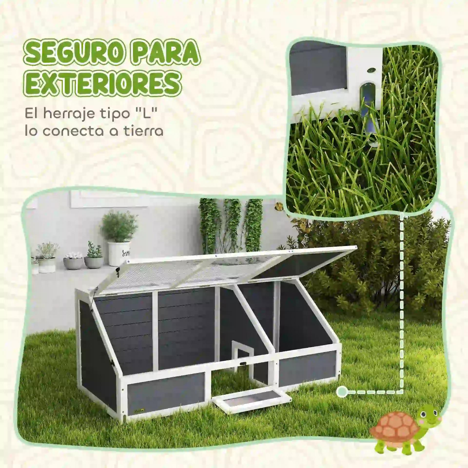 ANCLAJE SEGURO: Esta casa para tortugas de PawHut está equipada con herrajes tipo 'L' que permiten fijarla con firmeza al suelo, garantizando estabilidad y ofreciendo mayor seguridad frente a intrusos u otros animales