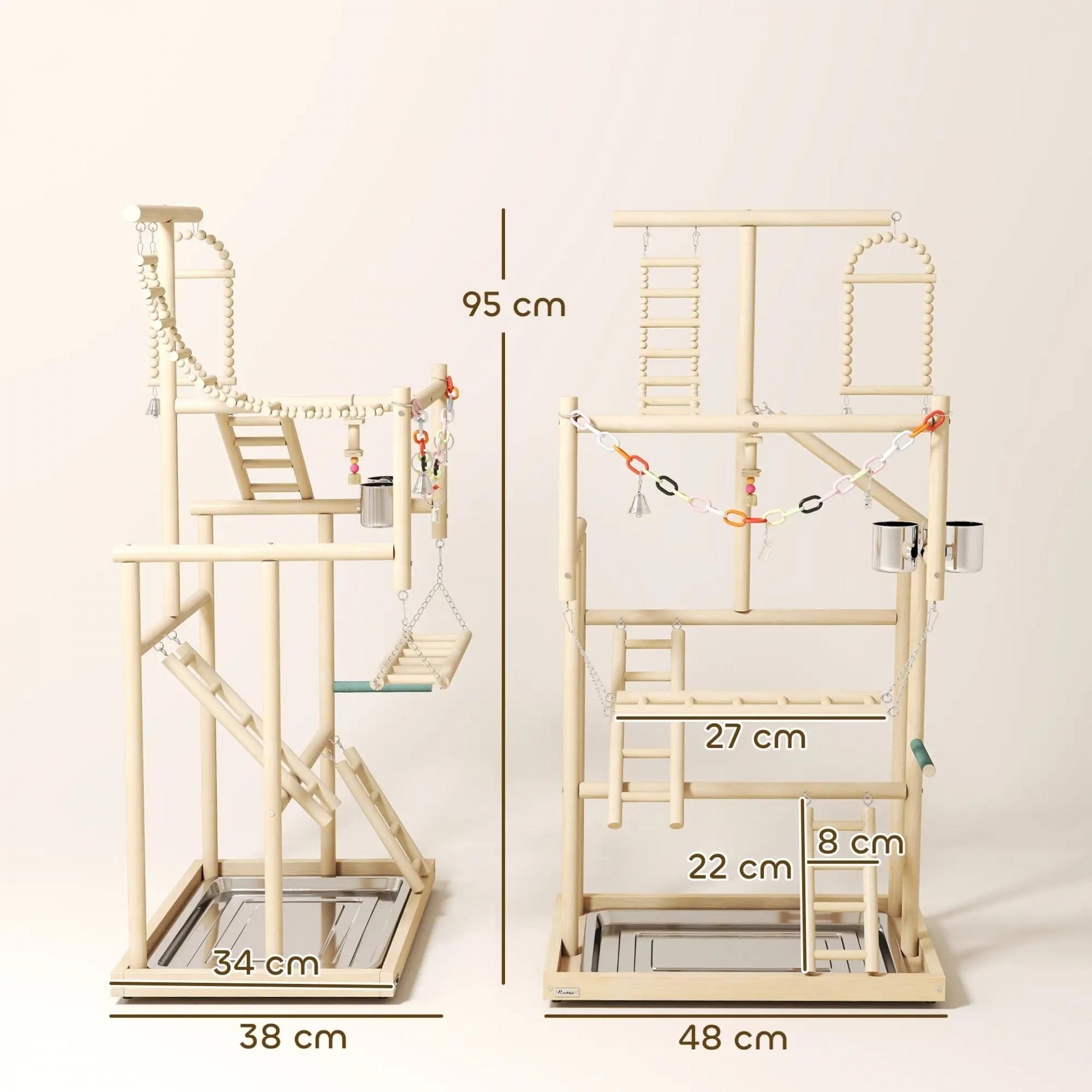 - FÁCIL DE LIMPIAR: Este parque de juegos para pájaros cuenta con una bandeja de acero inoxidable fácil de extraer que recoge residuos, facilitando una rápida limpieza y mantenimiento de un entorno higiénico para tus aves