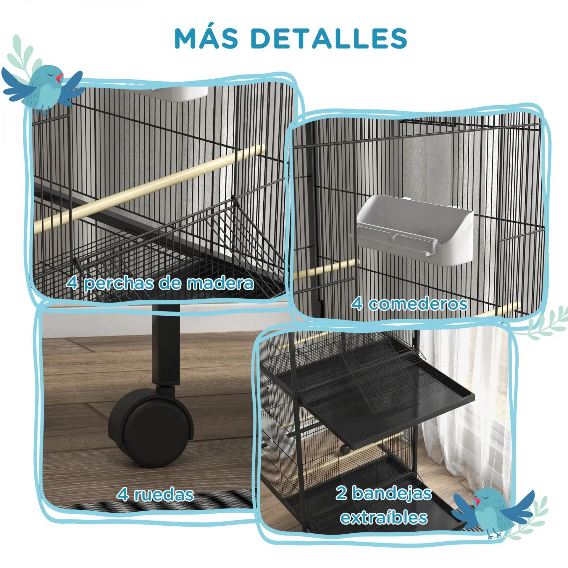 - RESISTENTE, DESMONTABLE Y CON RUEDAS: Jaula para agapornis con estructura resistente de acero de alta calidad, perchas de madera y, comederos y bandejas extraíbles. Cuenta con 4 ruedas giratorias, 2 de ellas con frenos, para mover la jaula sin esfuerzo y trasladar a tus aves de forma rápida y segura