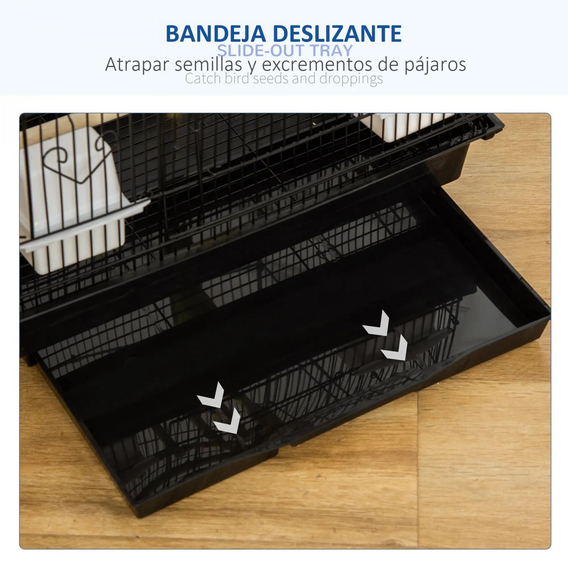 - BANDEJA EXTRAÍBLE FÁCIL DE LIMPIAR: La base inferior de esta jaula para ninfas es en realidad una bandeja que se puede desmontar del resto de la estructura y permite recoger los excrementos y restos de comida de los pájaros y facilitar su limpieza