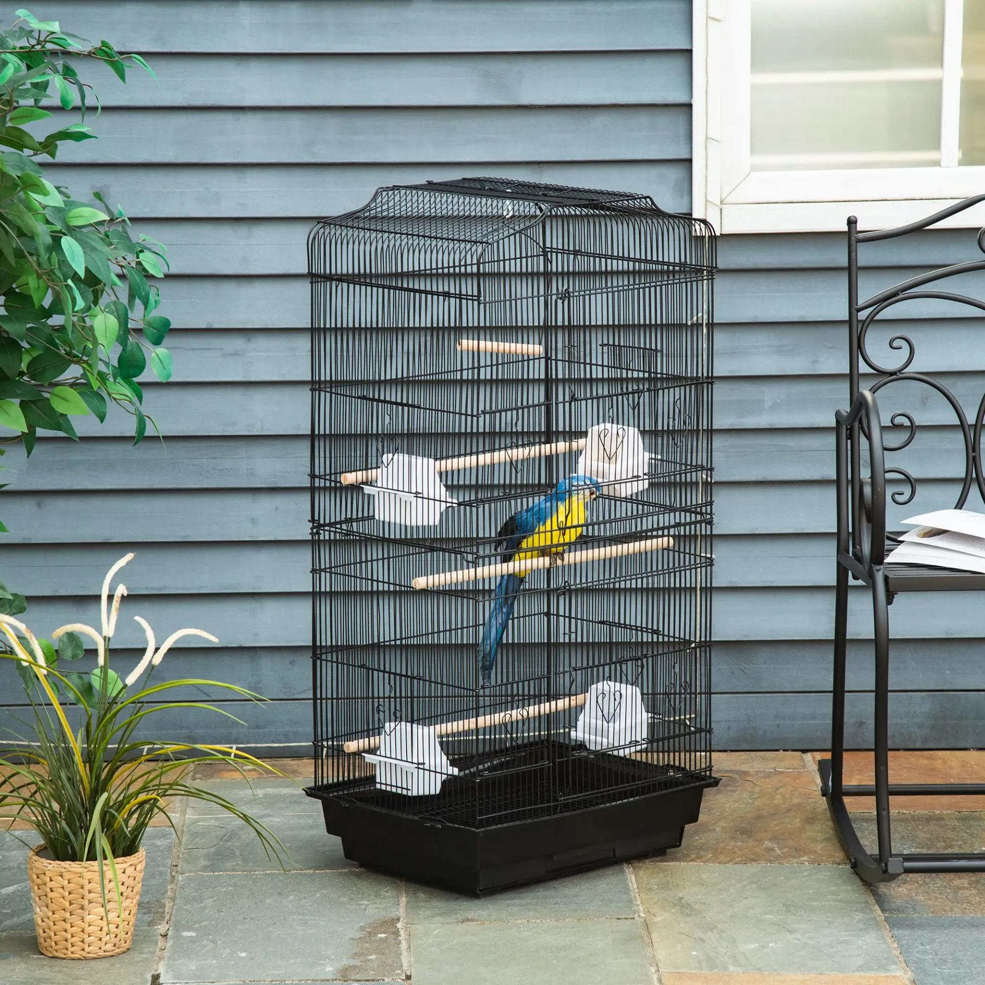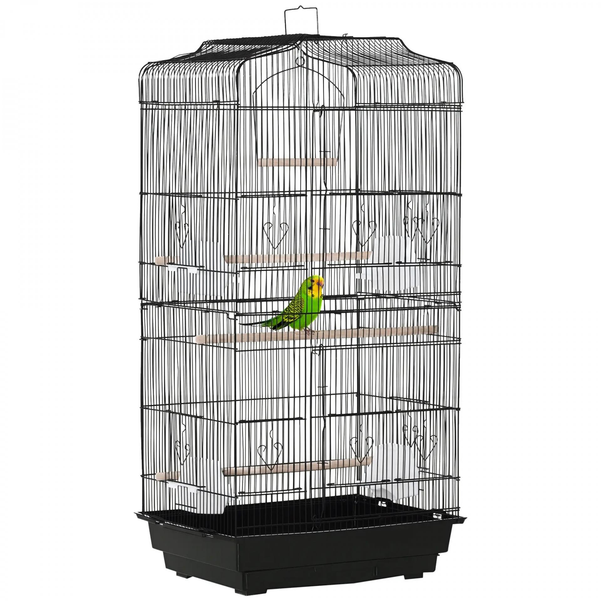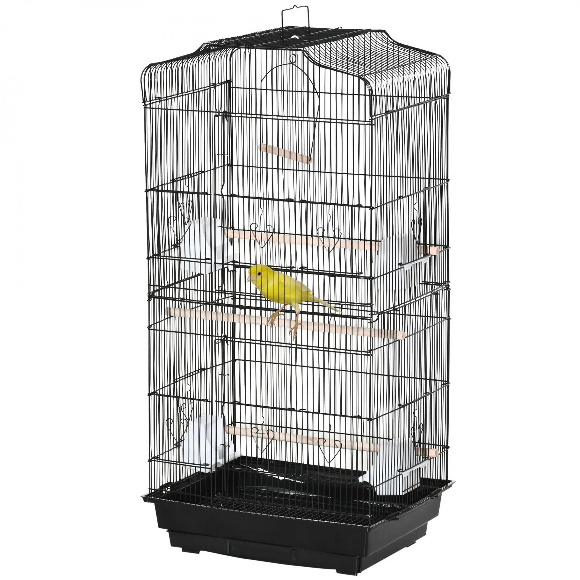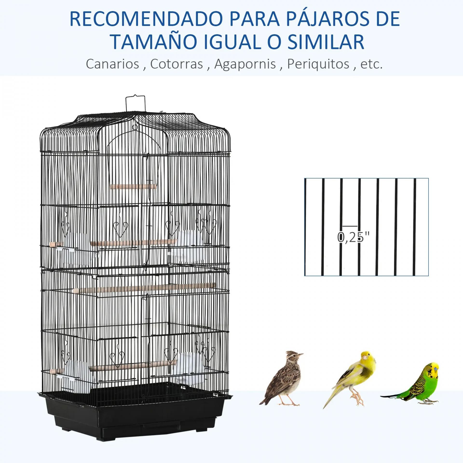 Jaula para Pájaros Pajarera de Metal con 4 Comederos 3 Perchas Columpio y Bandeja Extraíble 46,5x35,5x92 cm Negro