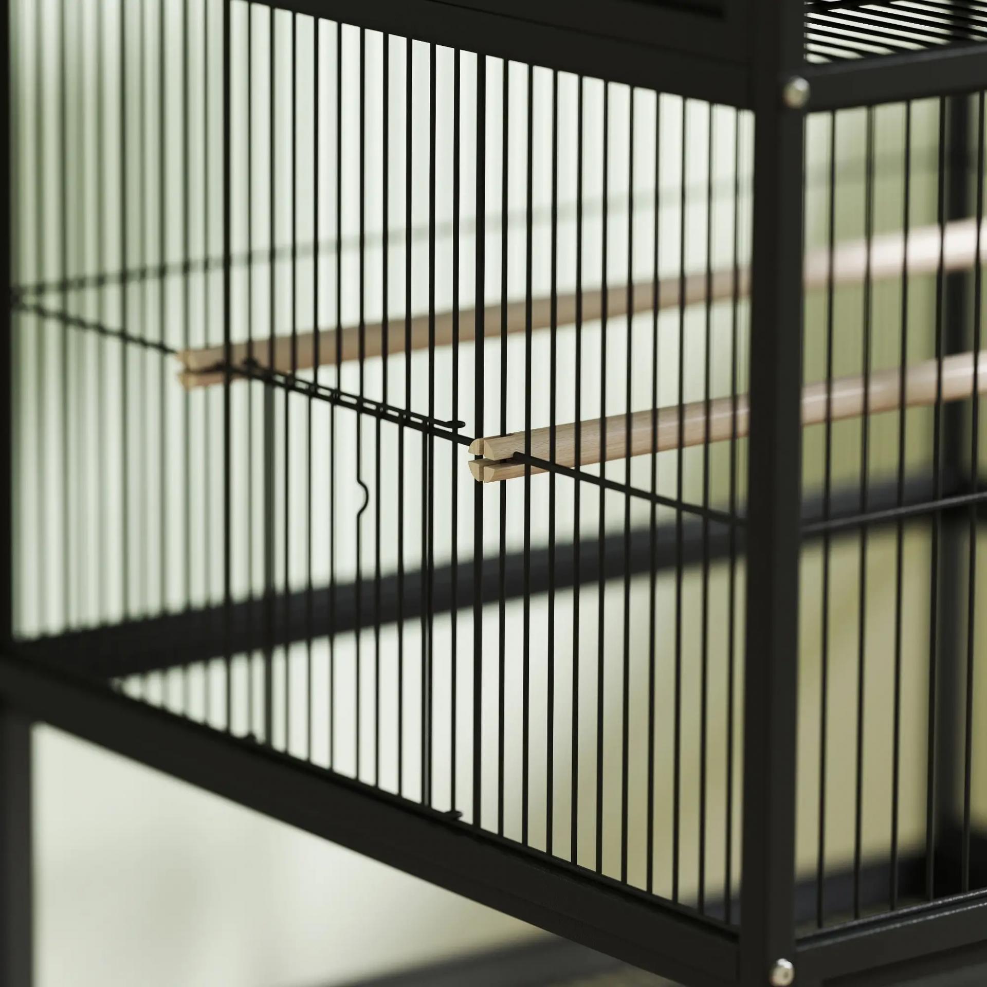- ESTILO Y FUNCIONALIDAD: Con un diseño moderno, práctico y de color negro, esta jaula para canarios se adapta perfectamente a cualquier ambiente, siendo ideal para casas, tiendas de animales o clínicas veterinarias