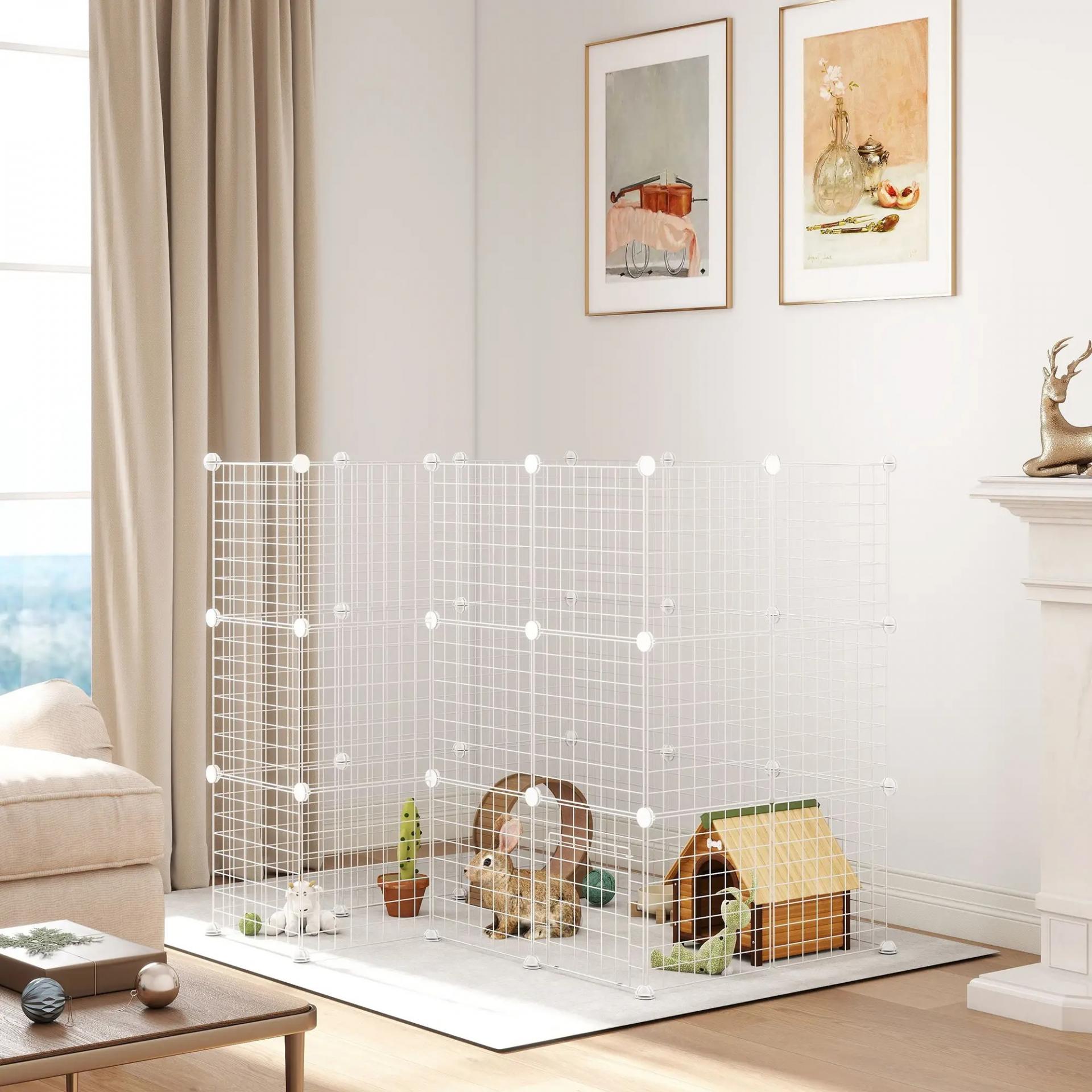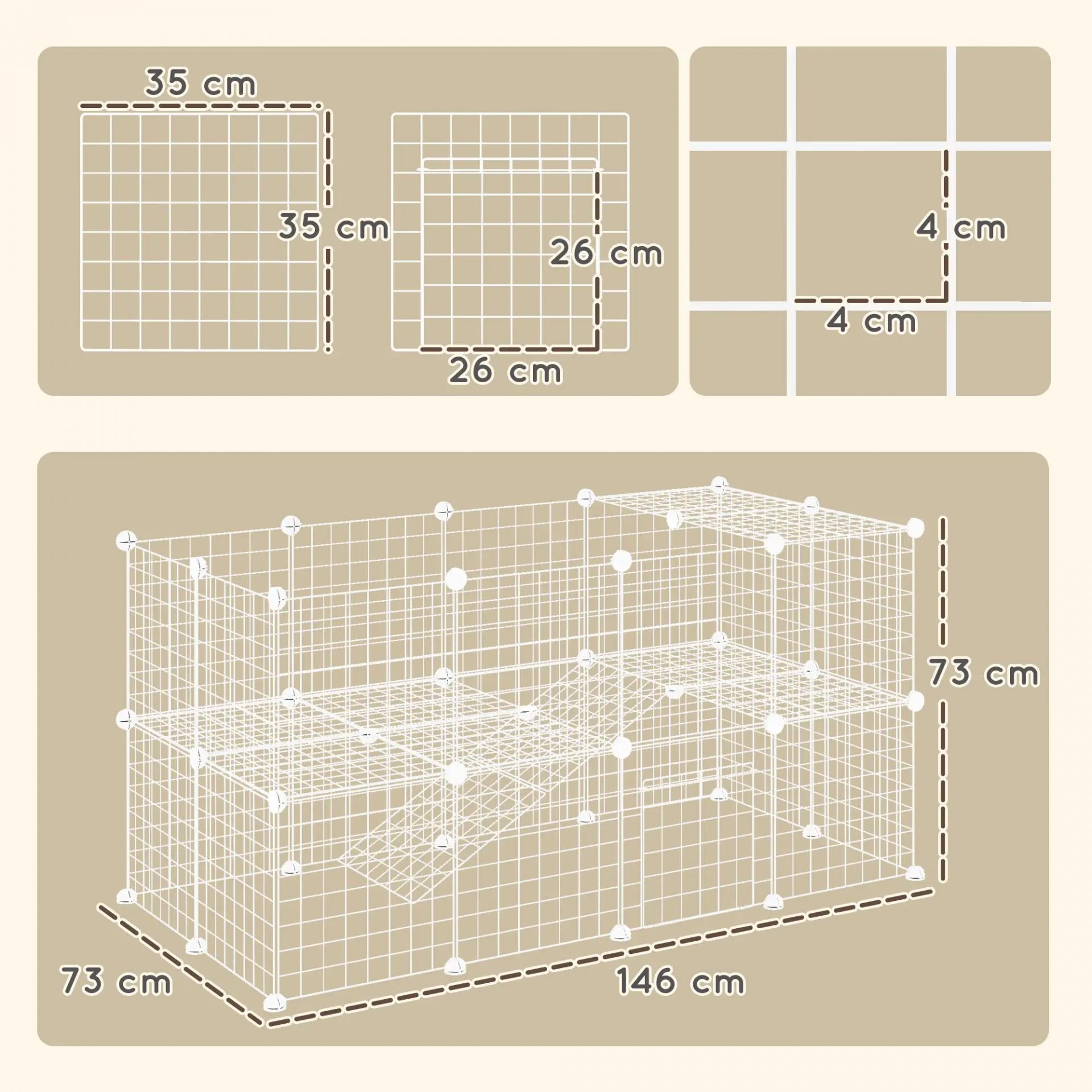 MODULABLE: Puedes montar este recinto para animales pequeños eligiendo la forma que prefieras en función de tus espacios. Por ejemplo, puede crear dos parques separados o crear un entorno único para que jueguen tus mascotas