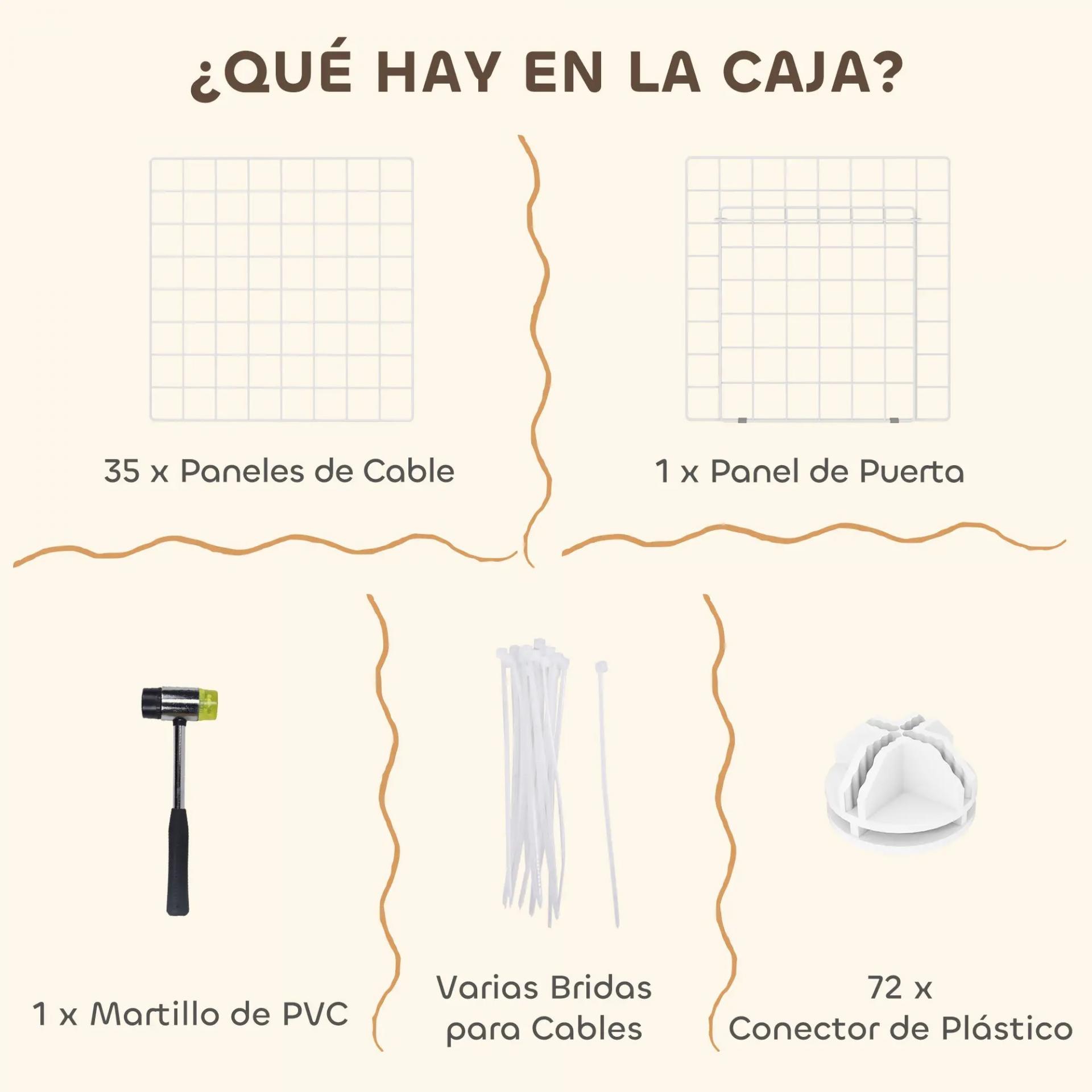 - ACCESORIOS INCLUIDOS: Esta jaula para animales pequeños viene con 36 paneles de metal (1 de ellos con puerta) y 72 conectores estándar. Incluye bridas y un mazo de plástico para proporcionar un montaje seguro, resistente y sin esfuerzo