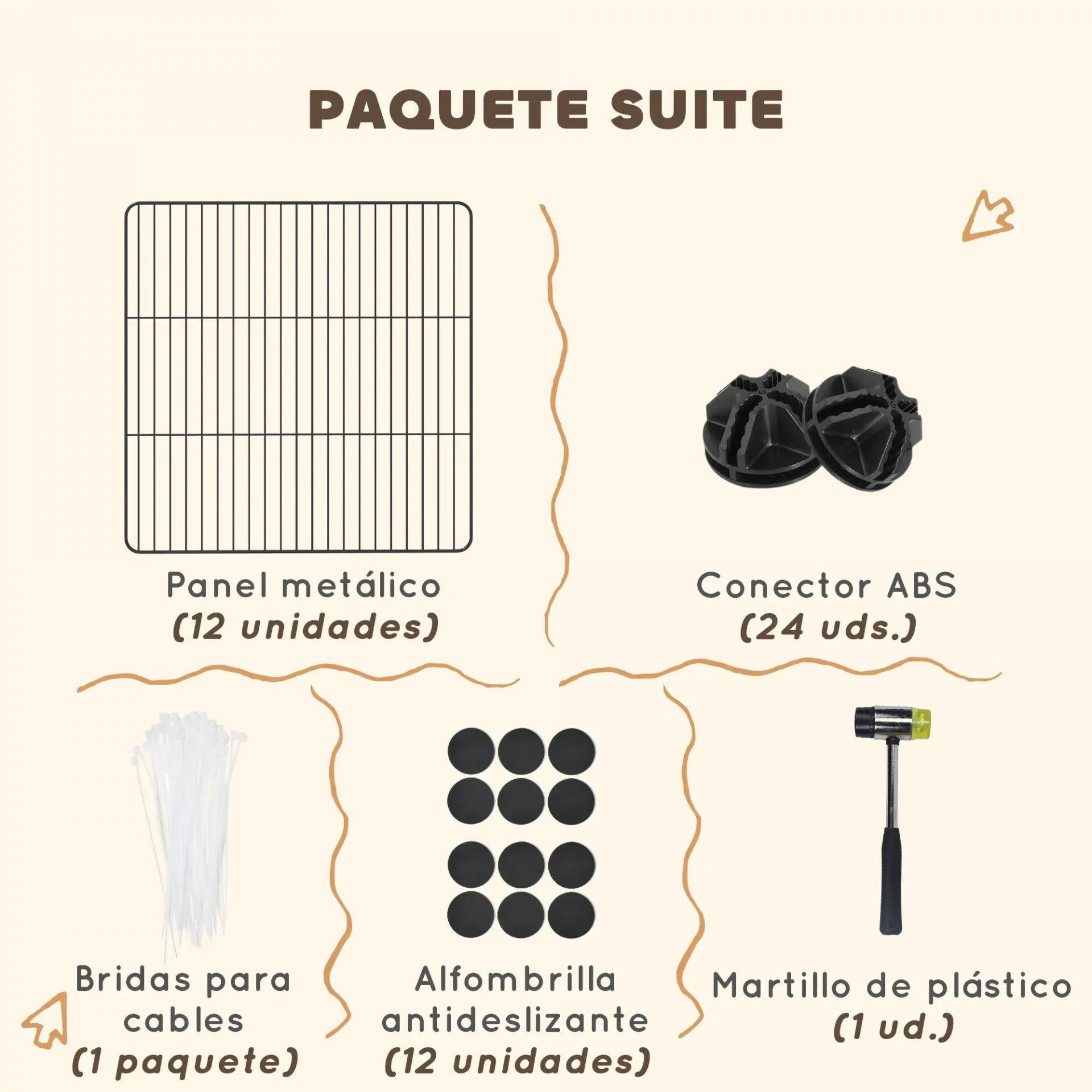 - ESTRUCTURA RESISTENTE: Hecho de 12 piezas de alambre de acero, este recinto para animales pequeños es duradero y práctico. Sus patas antideslizantes y bridas ofrecen estabilidad, y su ligereza lo hace fácil de transportar para vacaciones o visitas