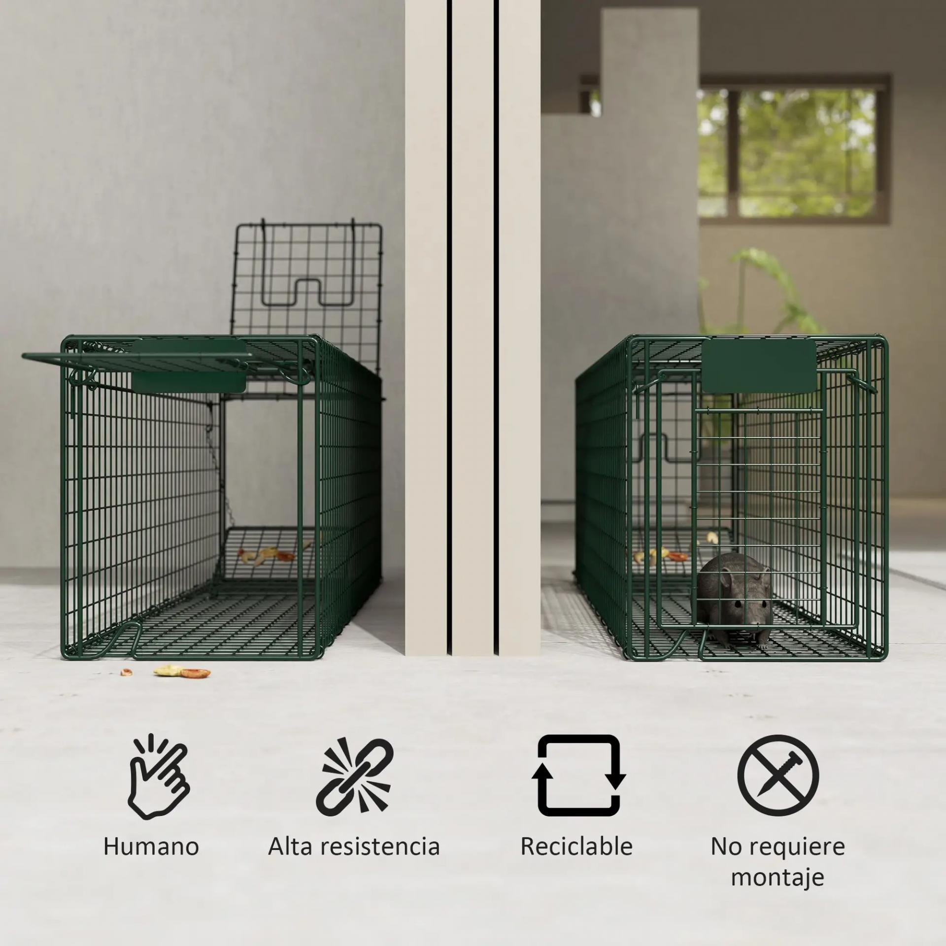 DISEÑO DE CAPTURA RÁPIDA: Incorpora una varilla ultrasensible que cierra la puerta de inmediato, asegurando al animal dentro de manera segura sin dañarlo, y un marco de acero que garantiza la máxima durabilidad